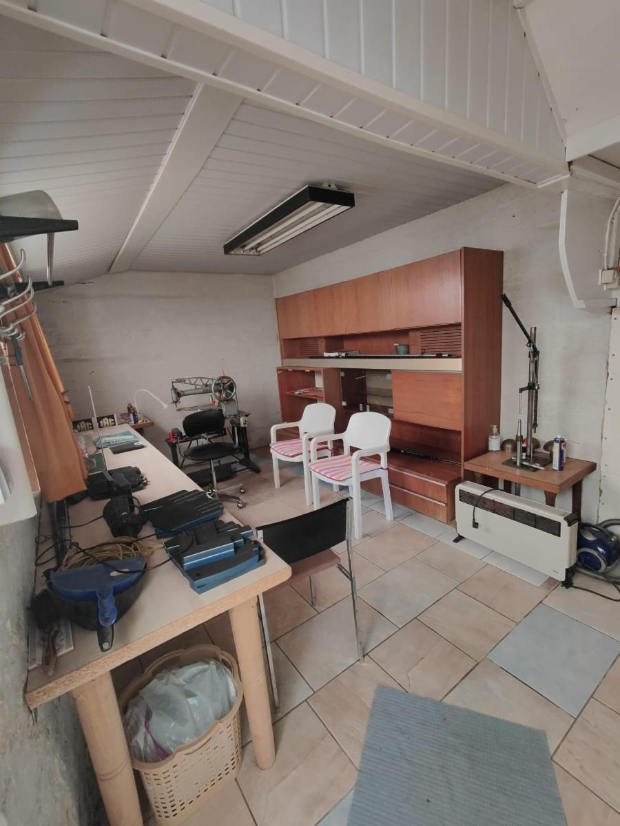Jolie maison avec jardin et remises sur et avec 6a 44ca – RC : 364 € - Comprenant : 2 garages atelier, cuisine, hall, 2pièces de séjour, sdb, wc – Etage : 3 chambres + débarra – parking 4 voitures devant la maison.
