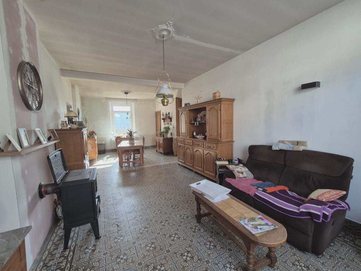 Une Jolie Maison d’habitation Récemment rénovée avec Terrasse et Jardin Rue de Mariembourg 6-À Frasnes-lez-Couvin (Couvin)-Descr. Som. : Rez : hall d’entrée, wc+lav, vaste séjour (36m²+poêle à bois), cuisine (13m²-cuisinière au bois), grande pièce de 21m² (convient pour profession libérale ou autres)-1er Etage : palier, 4 chambres (11, 16, 17 et 17m²), sdb (douche, lav, wc)-2ème Etage : Grand grenier aménageable-DV- Chauff. Poêle à pellets- Electricité conforme- Jardin exposé Sud avec remise- Terrasse- Travaux récents (toiture, isolation, châssis, chaudière,…)-– Belles menuiseries -PEB C (N°20260317027553) – Proximité des Commerces et axes routiers-RC :473 €- Sup : 03 A 24 CA -Vis. : Sur RDV en l’étude
