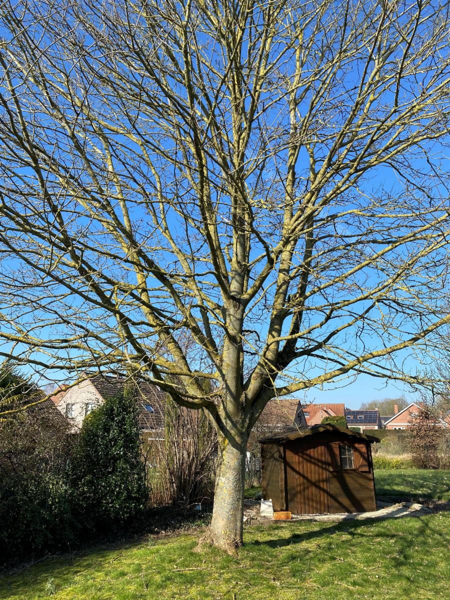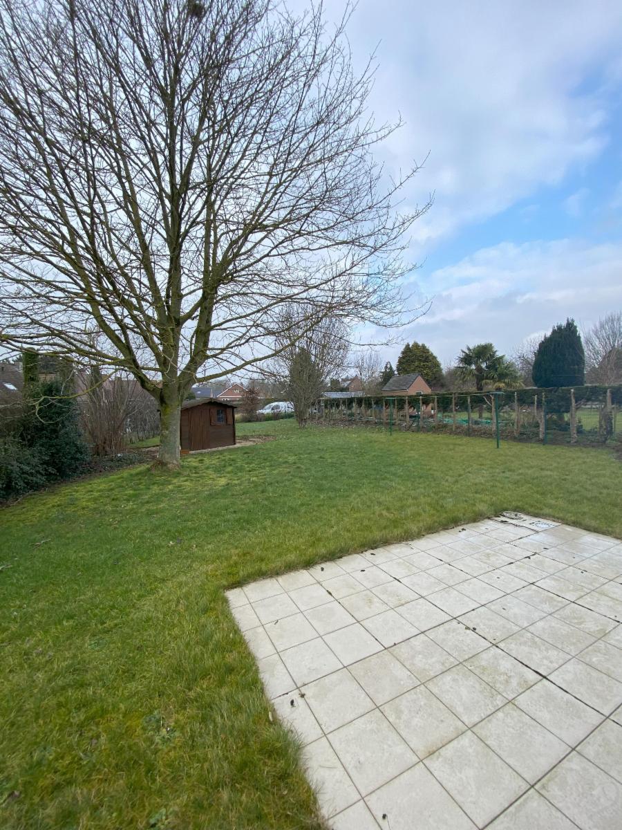A l'extérieur: places de parking devant la maison, trottoir, jardin entretenu avec chalet (+cave saine).