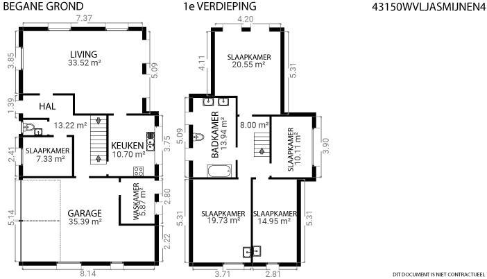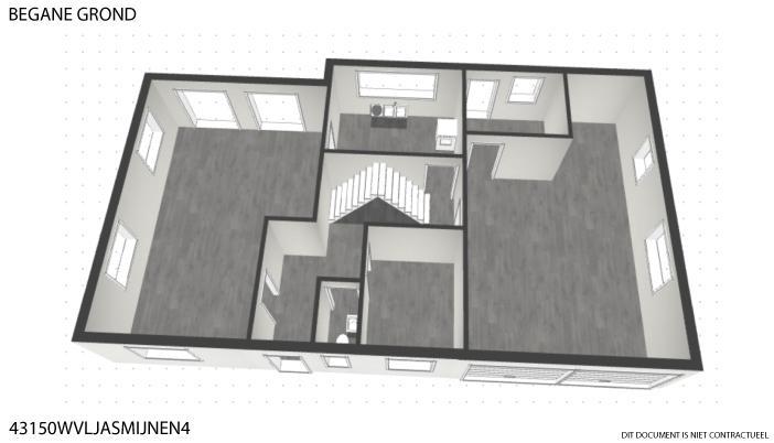 Gelijkvloers: inkomhal, bureau, gastentoilet, ruime woonkamer met eetgedeelte, keuken, wasplaats, berging en garage voor 2 wagens.