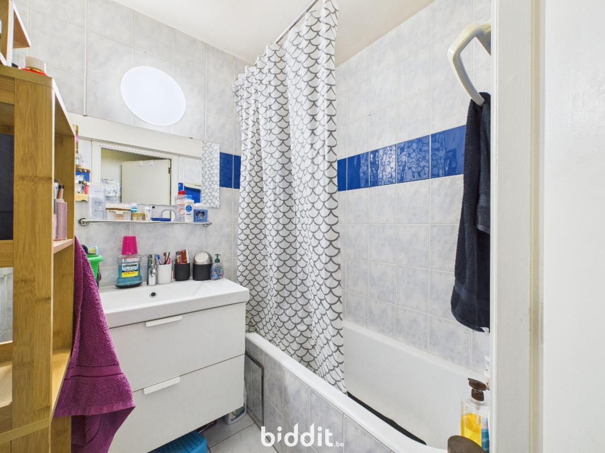 Comprenant living, hall avec buanderie, hall de nuit avec armoire encastrée, terrasse, cuisine, wc, sdb et 1 ch. à coucher, cave n° 60. R.c.n.i. 897€. Le bien est occupé. Zone d’habitation à prédominance résidentielle. PEB :C/126. Contr. électr. non conforme. Visites : mardis 10, 17, 24/2 et 3/3/26 de 10-12h et samedis 14, 21 et 28/2/26 de 9-11h.