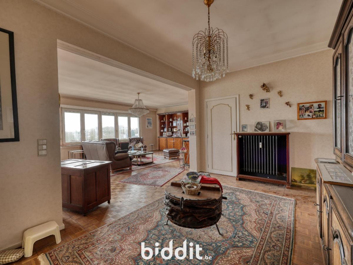 Av. du Pesage 127, bloc B C6, compr. : hall, living, bureau, balcon, vestiaire, 2 wc, sdb, lingerie, office, armoire, 2 chambres, cuisine, terrasse arrière, cave n° 10 au ss-sol. PEB : F/282. Contr. électr. non conforme.