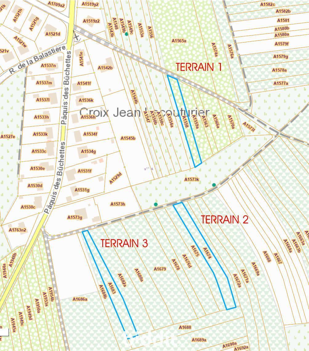 Une parcelle de terrain boisée, sise au lieu-dit « La creux Jean La Couterie », pour une contenance totale de treize ares dix centiares (13a 10ca).