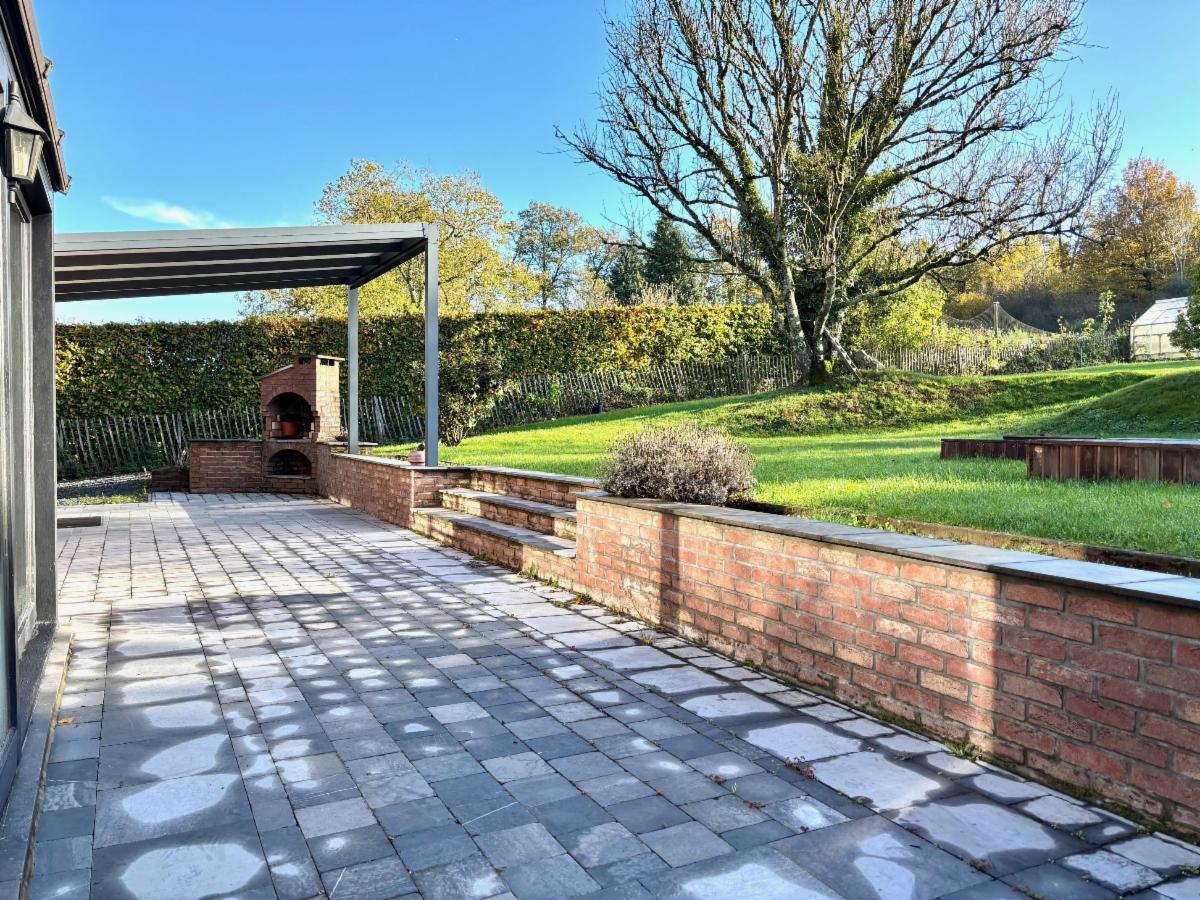 A la recherche d'une nouvelle maison 4 façades avec jardin dans la région de Durbuy ? Venez découvrir cette magnifique propriété située dans le charmant village de Wéris, dans la Commune de Durbuy. Implantée sur une parcelle de 11,5 ares, cette maison construite en 2005 dispose d'une superficie habitable d'environ 200 m² répartie sur plusieurs niveaux. Le premier niveau est composé d'un grand hall d'entrée avec WC indépendant, une buanderie et un garage. A un autre niveau, nous trouvons une spacieuse et lumineuse pièce de vie d'environ 65 m². Cette pièce regroupe les espaces cuisine, salon et salle à manger et permet d'accéder directement à la terrasse. A l'étage, nous retrouvons un hall de nuit, ainsi que 4 belles chambres de 22m², 21m², 17 m² et 15m² , un dressing et une salle de bains composée d'une douche et d'une baignoire. Ce bien possède donc tout le confort nécessaire et se distingue par sa faible consommation énergétique grâce à sa très bonne isolation générale (PEB B), ses panneaux photovoltaïques, sa citerne d'eau de pluie, sa conformité électrique, son système d'alarme, etc. A l'extérieur, les futurs propriétaires pourront profiter d'un beau jardin orienté sud-est, d'une agréable terrasse d'environ 35m² avec pergola et d'un abri de jardin. Le bien dispose également d'un grand carport et de 4-5 emplacements de parking extérieurs. Quartier idéal et calme avec peu de passage! Intéressés par ce bien? Ne tardez plus à nous contacter au 084/320.320!