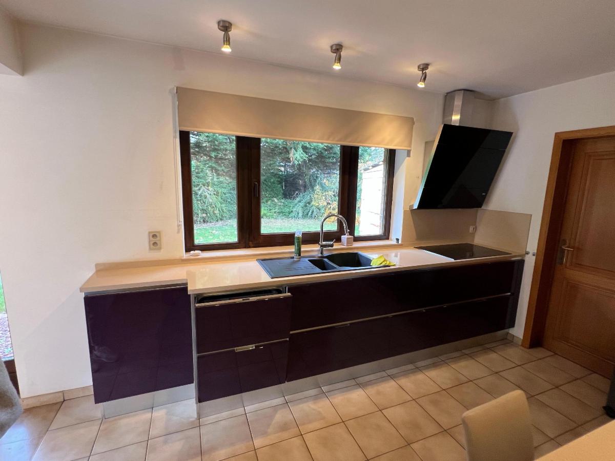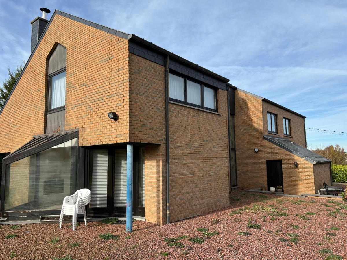 Grande maison 4 façades, avec vaste jardin (plus de 20 ares) et double garage. Cadre de vie agréable : maison spacieuse, lumineuse et de standing, jardin bien arboré, possibilité de se déplacer à pieds, à proximité de toutes les commodités (magasins, arrêt de bus, écoles,..). Parfait pour une profession libérale et une famille. Composition : hall d'entrée, wc, cuisine neuve et équipée, buanderie (avec espaces de rangement), grand espace salon et salle manger (avec feu ouvert), bureau, hall de nuit, nombreux espaces de rangement/dressings intégrés, 4 chambres, salle de bain/de douche, avec éviers et wc.