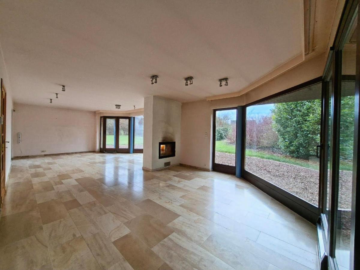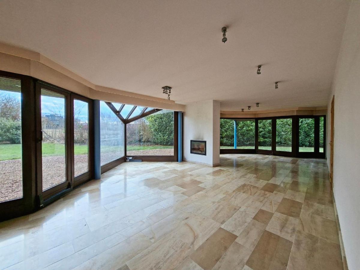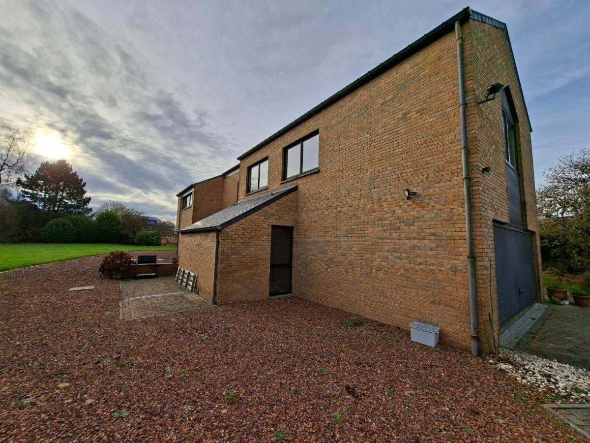 Grande maison 4 façades, avec vaste jardin (plus de 20 ares) et double garage. Cadre de vie agréable : maison spacieuse, lumineuse et de standing, jardin bien arboré, possibilité de se déplacer à pieds, à proximité de toutes les commodités (magasins, arrêt de bus, écoles,..). Parfait pour une profession libérale et une famille. Composition : hall d'entrée, wc, cuisine neuve et équipée, buanderie (avec espaces de rangement), grand espace salon et salle manger (avec feu ouvert), bureau, hall de nuit, nombreux espaces de rangement/dressings intégrés, 4 chambres, salle de bain/de douche, avec éviers et wc. Un sentier borde le terrain (voir plan disponible sur demande).
