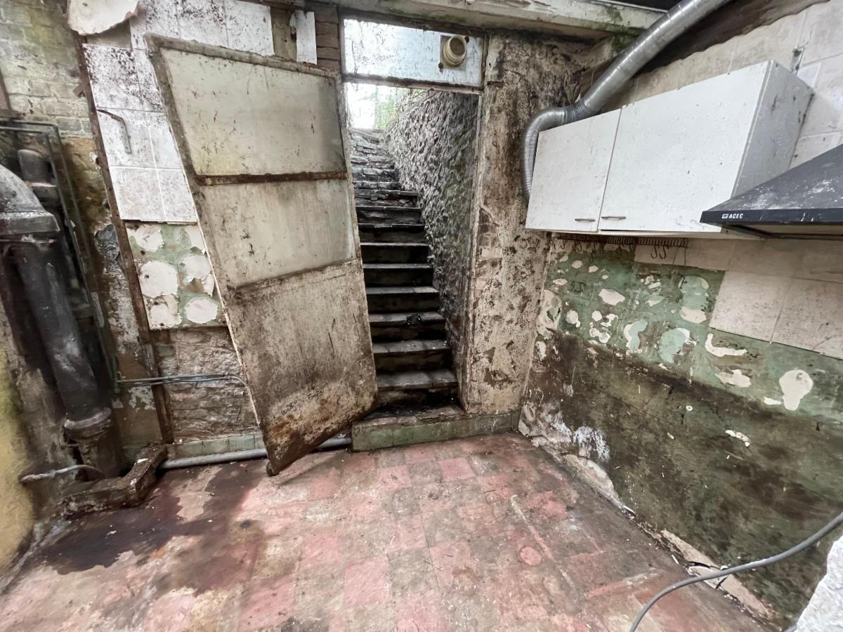 Maison 2 façades à rénover entièrement et se compose au RDC : un salon, une salle à manger, une pièce d’eau, une buanderie et une terrasse couverte.