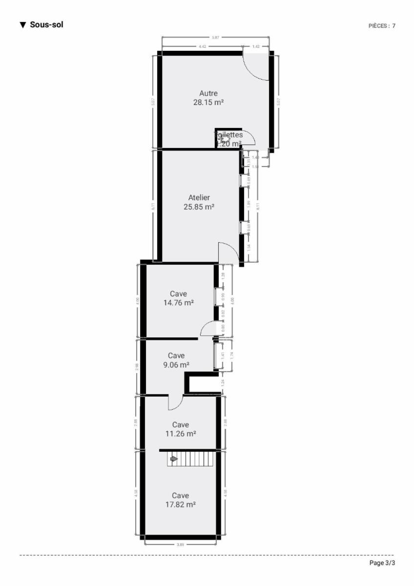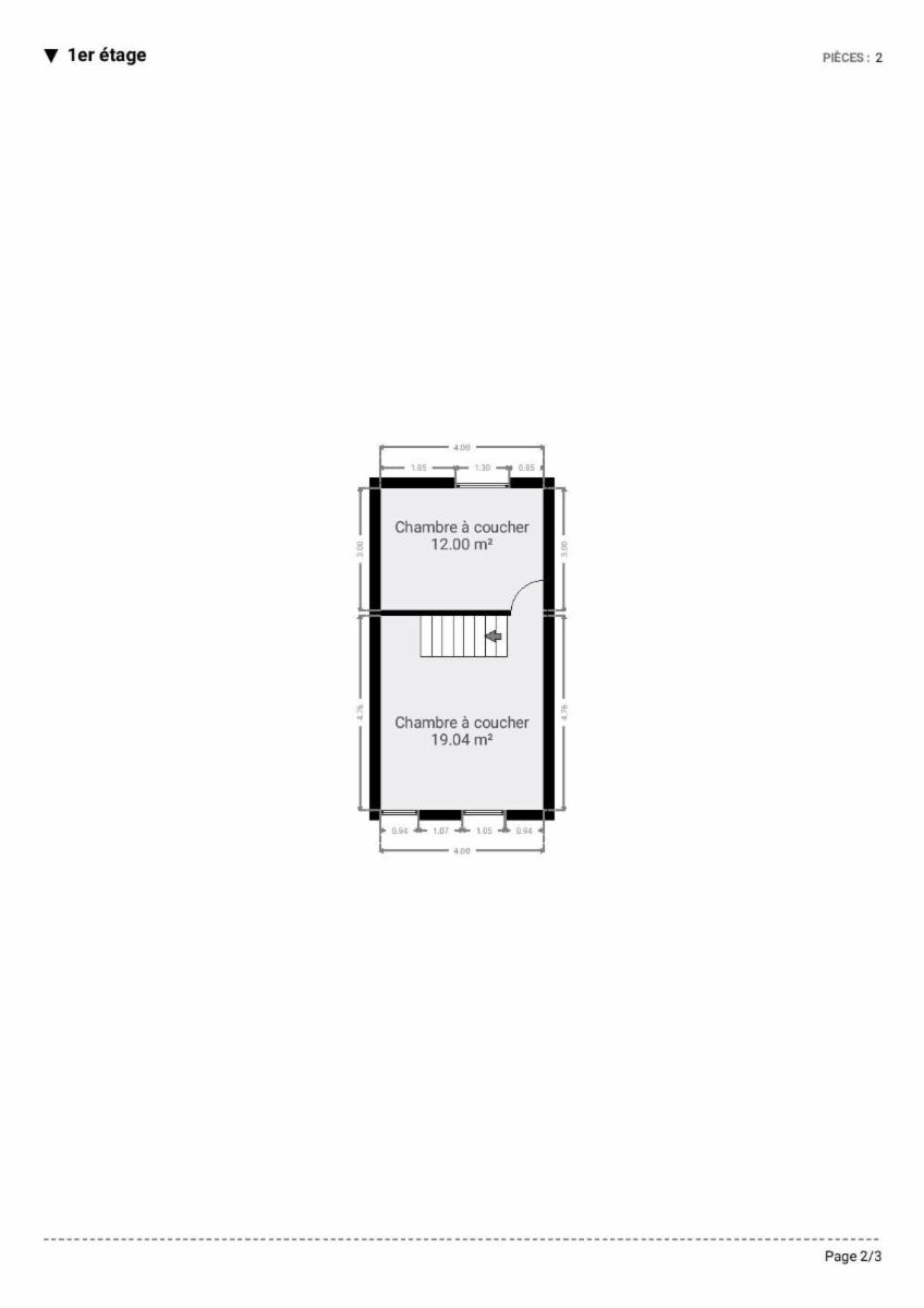 - 4 pièces en enfilade dont une cuisine non équipée et une petite salle de bain;