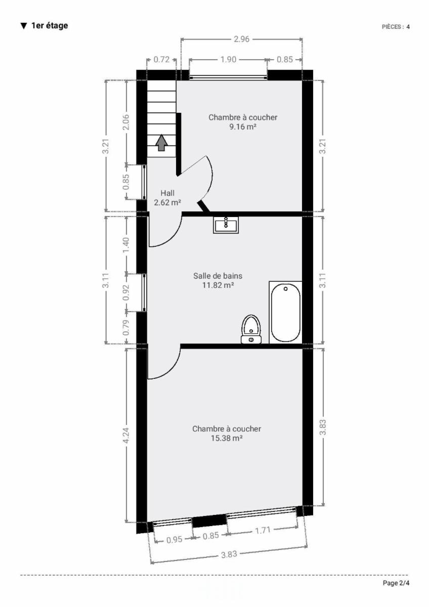 Maison 2 façades avec grand jardin proche de la gare d'Archennes, des bus et d'une école primaire. Elle se compose comme suit: au rez-de-chaussée un salon de 14m², une salle à manger de 15m² avec un accès au garage et une cuisine de 6m². Au 1er étage: un hall de nuit donnant accès à une 1ère chambre de 9m² et à une salle de bains de 12m² qui donne accès à une seconde chambre de 15m². Au 2ème étage un grenier sur toute la surface de la maison. Au sous-sol une cave de 8m². PEB G, contrôle électrique non conforme. Châssis en bois simple et double vitrage. Citerne à mazout de 1.200 L.