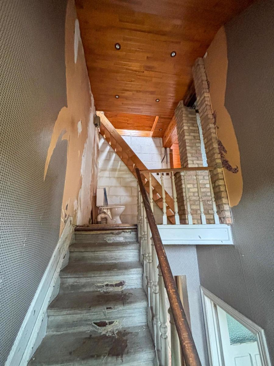 Vente soumise à l’autorisation du Juge de Paix • Maison entièrement à rénover - 2 façades avec jardin située près du centre-ville et gare, l’ensemble cadastré section H n° 0371P0000 d’une superficie de 2 ares 99ca • Construction : 1919 -1930 • REZ-DE-CHAUSSÉE (± 79m²) : corridor, cage d'escaliers, accès au sous-sol (± 54m²) 3 caves, séjour 2 pièces en enfilade et cuisine meublée carrelée (LV, 4 taques gaz, four, hotte) avec accès jardin, pièce servant de buanderie (arrivée et décharge d’eau + wc) • ÉTAGE 1 (± 54m²) : palier, 2 chambres, logette wc, pièce SDB (lavabo, bain) • ÉTAGE 2 (± 54m²) : 3 pièces sous combles et palier avec wc • Sous toiture : pièce aménagée accessible par escaliers • Ar-rière de la maison : cour avec remise (± 19m² - ancien atelier bâti sur 2 niveaux), accès au jardin par un escalier et remise à mi-chemin dudit escalier • Équipement : châssis alu, double vitrage, chauffage par convecteurs gaz, pas de garage • Informations complémentaires : contacter l’étude • Visites : sur rdv en contactant au préalable le 0476/244.177 durant les heures de bureaux. Adresser offre via www.biddit.be/fr/organisation/lot/289157