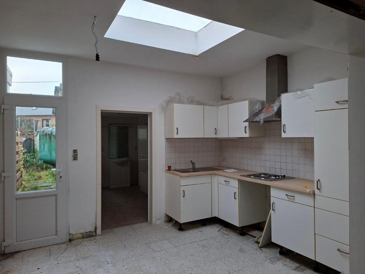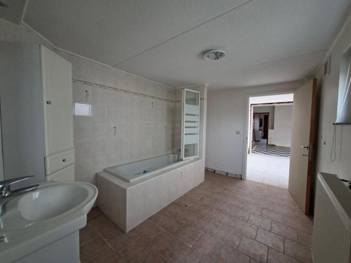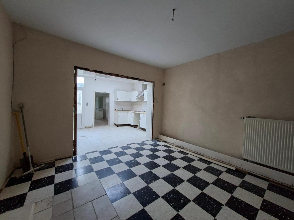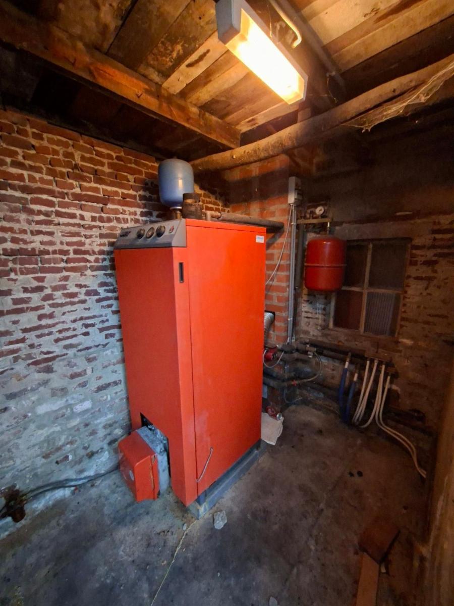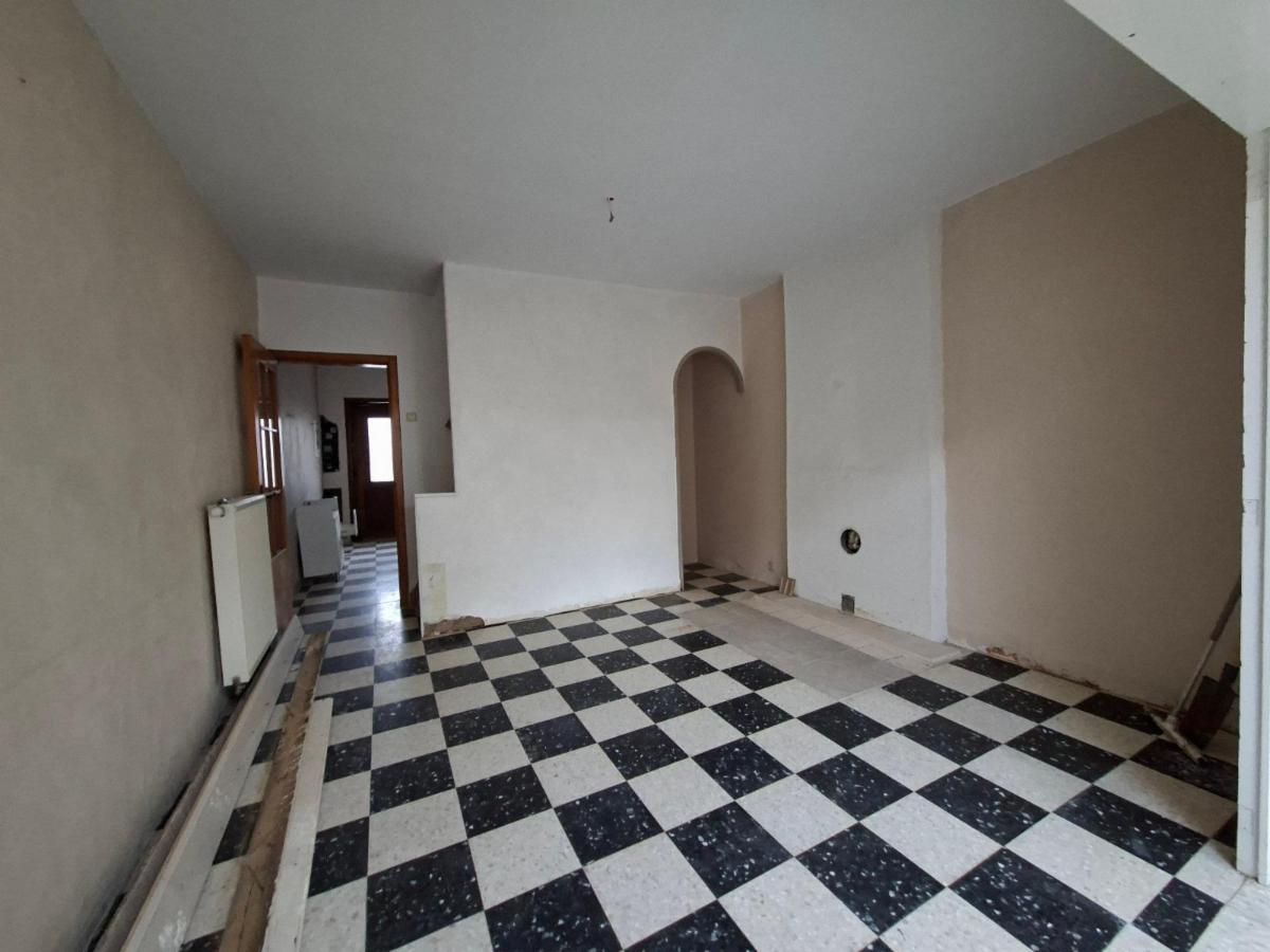 Au rez-de-chaussée, la maison se compose de quatre pièces : un living, une salle à manger, une cuisine ainsi qu’une salle de bain. Des caves sont présentes sous une partie de l’habitation.