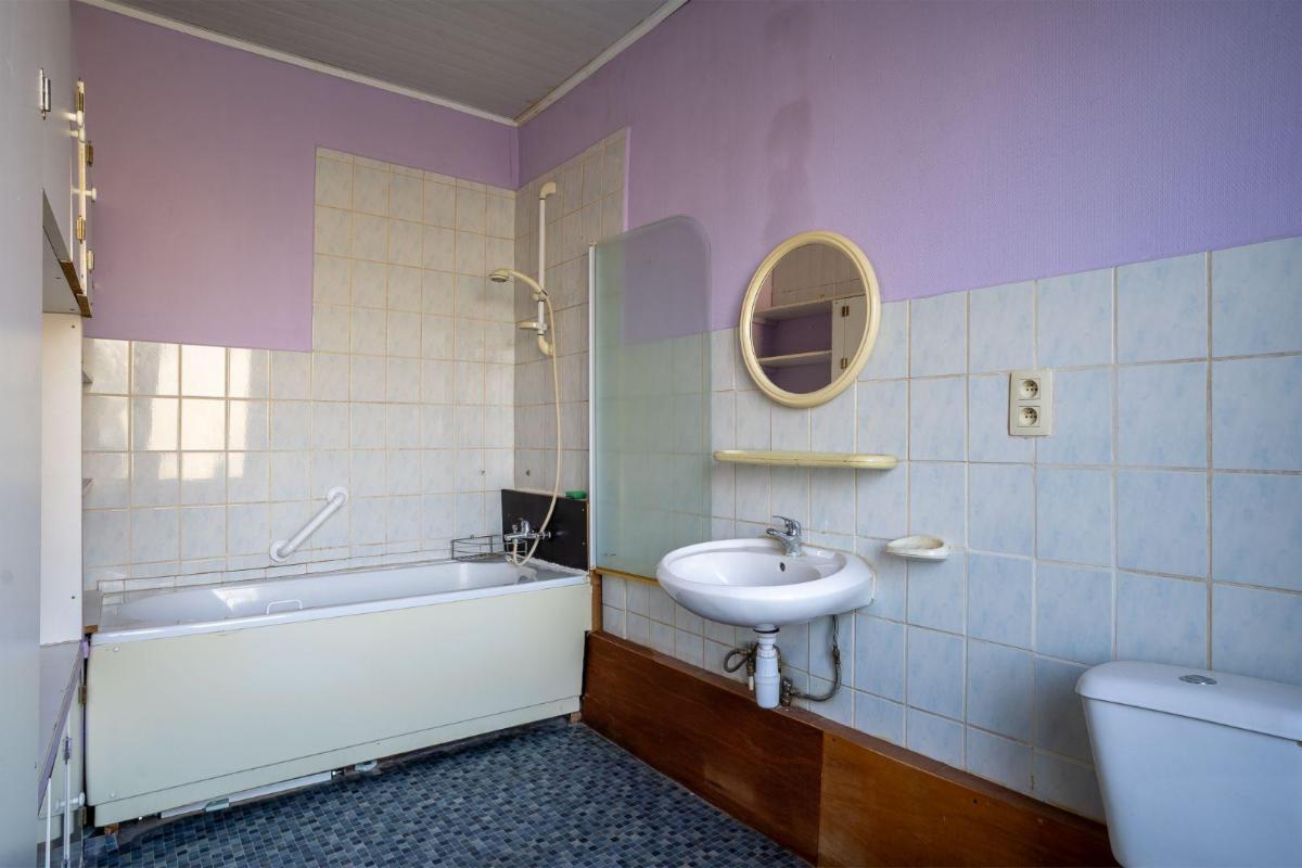 - au premier étage: une grande chambre et une salle de bain (avec bain, un WC et une vasque);
