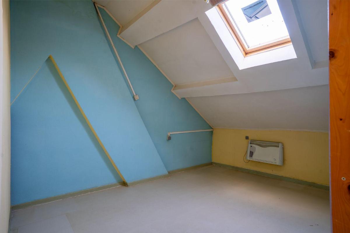 - au rez-de-chaussée: un living, une cuisine non équipée (avec un poêle à pellets);