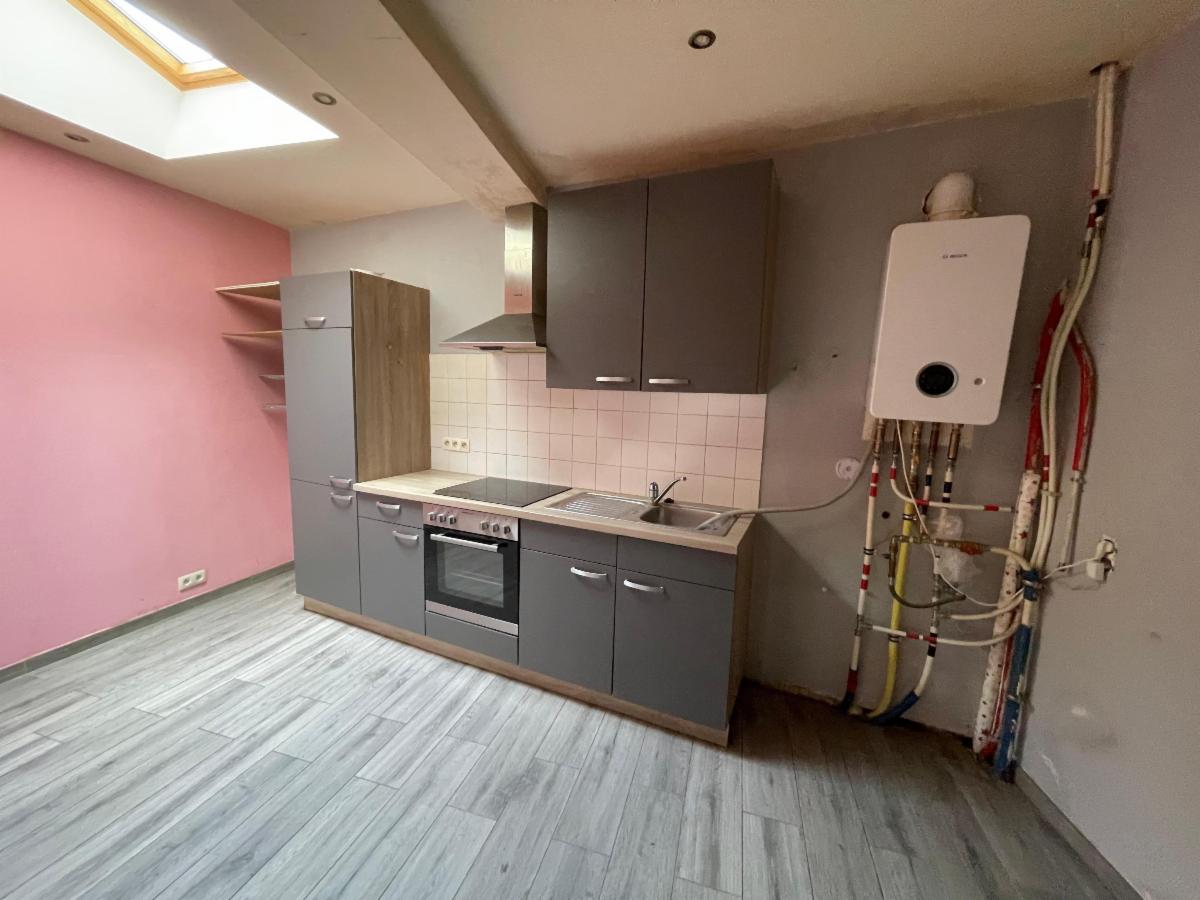 Maison 3 façades en bon état et se compose au RDC : un salon, une salle à manger et une cuisine.