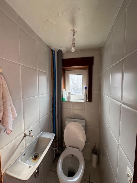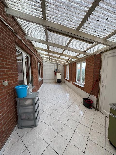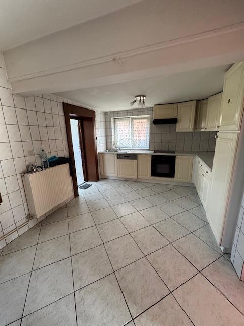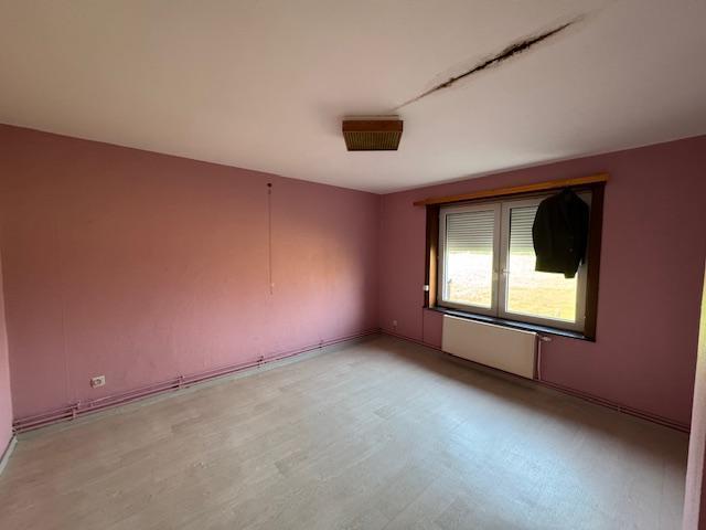 Maison 3 façades comprenant au rez-de-chaussée : un hall d'entrée, un WC séparé, un séjour, une cuisine, une véranda. Au 1er étage : 5 chambres. Au 2ème étage : un grenier. Extérieurs : un garage, un passage latéral, un jardin attenant au bien et un jardin séparé (+/- 7 ares). Equipements : châssis double vitrage avec volets, chauffage central au mazout, citerne à mazout, électricité à refaire. Un chemin passe à l'arrière du jardin attenant à la maison. Visites sur rendez-vous pris en l'Etude.