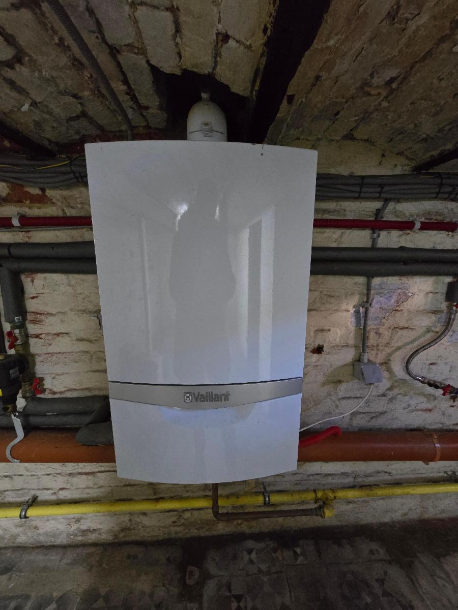 Sur le plan technique, la maison est équipée de châssis PVC double vitrage haut rendement avec volets, d’un système de chauffage central au gaz de ville via une chaudière à condensation Vaillant récente, et d’une production d’eau chaude assurée par un boiler électrique. L’installation électrique est conforme au RGIE jusqu’en 2044. L’annexe bénéficie d’une isolation de toiture par 10 cm de polystyrène expansé et d’une isolation des murs par 5 cm.