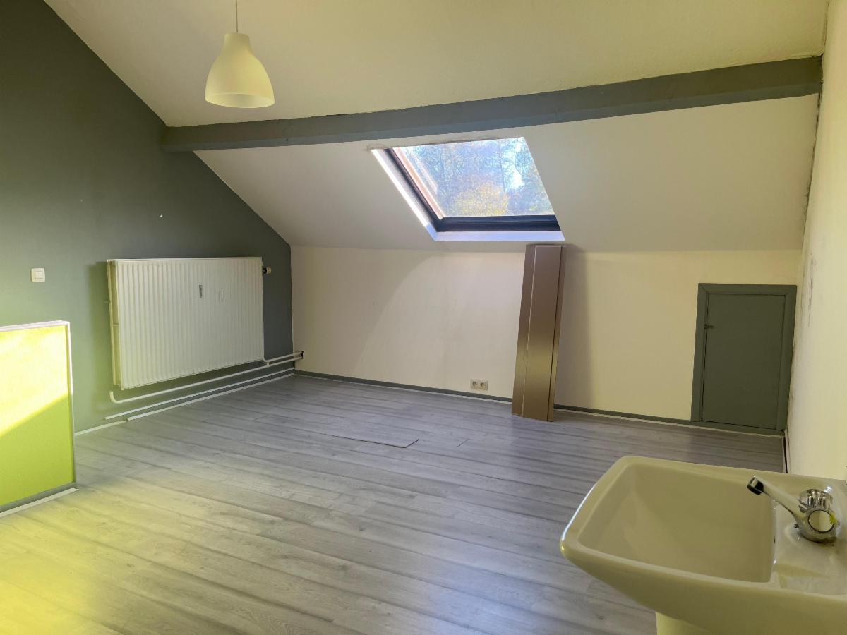 Maison 3 façades en bon état, idéalement située à proximité des grands axes (E411-Charlemagne) et de toutes les commodités de la Ville de Ciney. Composition : RDC : vaste living avec cuisine semi-équipée ouverte, WC, 1er étage : SDD, 2 chambres ; 2ème étage : grande chambre avec évier. Caves, chaufferie (chaudière récente), belle terrasse en bois (carport en-dessous). Châssis double vitrage en bois. Chauffage central mazout. PEB : F.