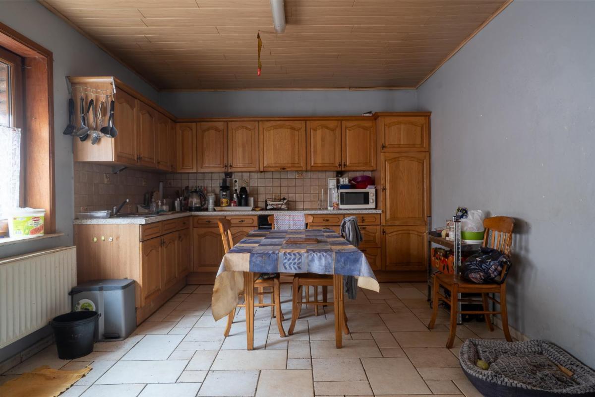 - Un rez-de-chaussée comprenant : un salon, une salle à manger, une grande cuisine équipée avec coin à manger donnant accès une petite cour, une salle de douche (douche, wc et lavabo) et une grande remise.
