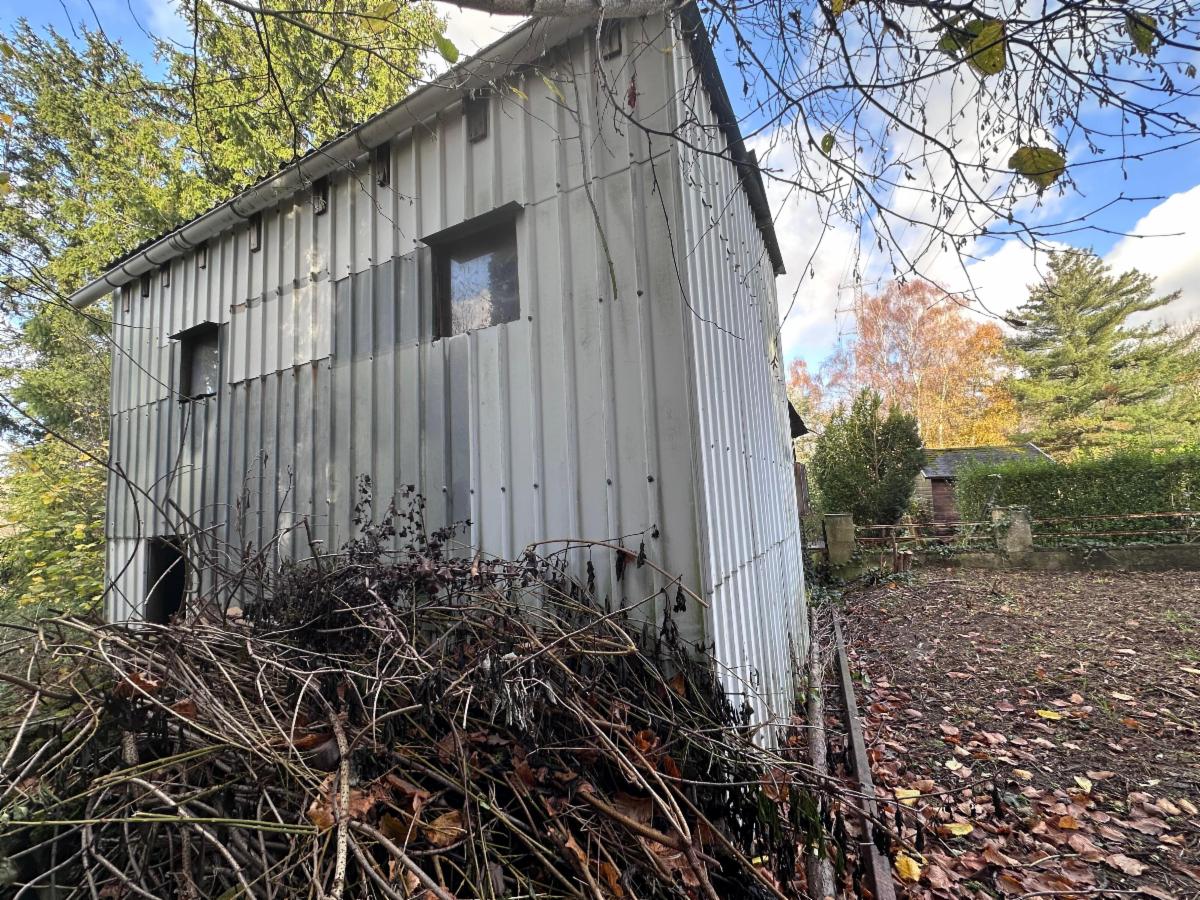 Reposant sur un terrain de 900 m², la maison dispose également d'un grand garage accessible par une allée latérale.