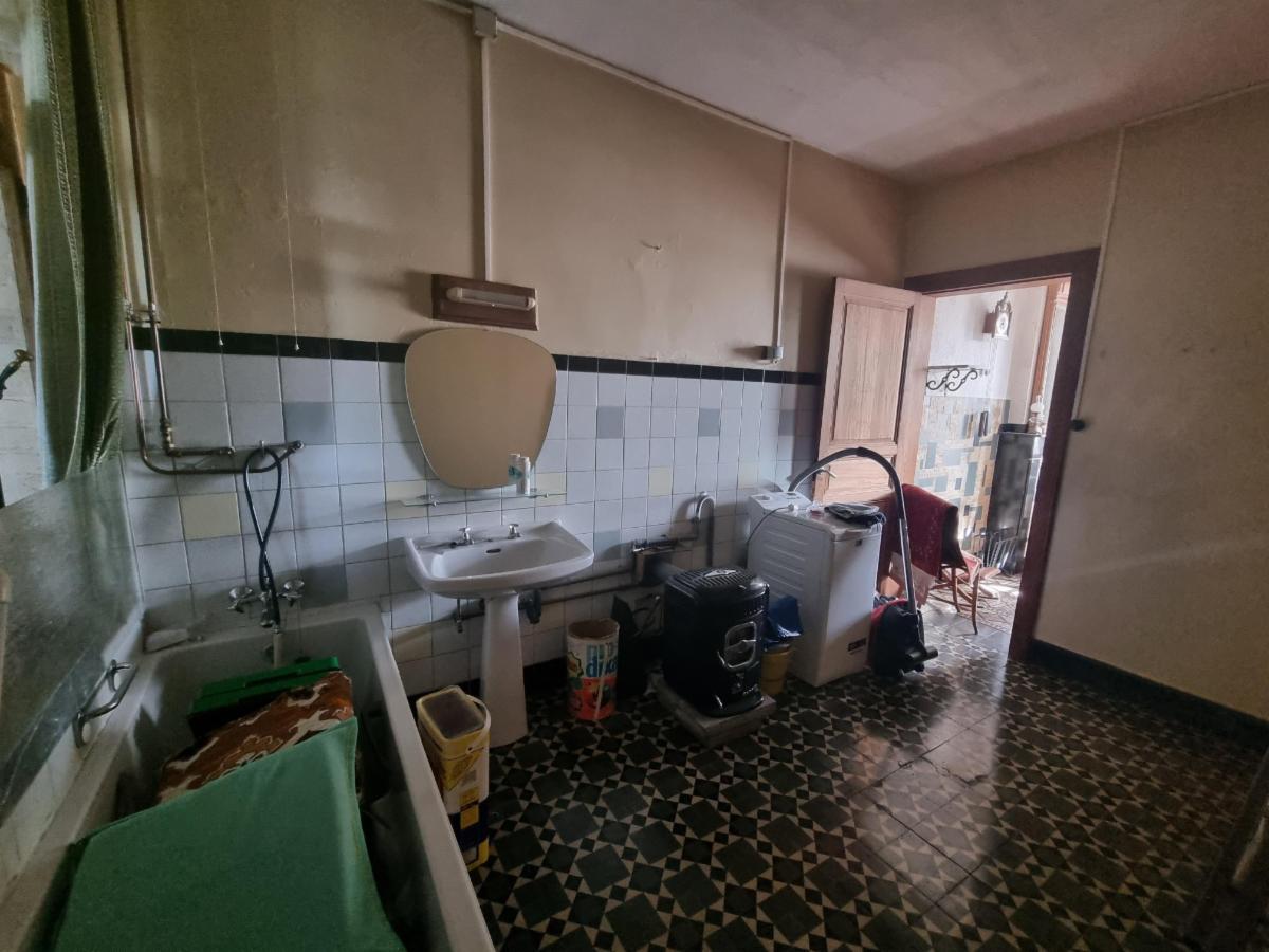 Le bien est composé au rez d'une pièce de vie avec feu au mazout. Sur la gauche, on trouve une deuxième pièce à vie, salle-de-bains (bain, évier, feu au charbon ou bois), une pièce avec feu au mazout, une cuisine non équipée, wc.