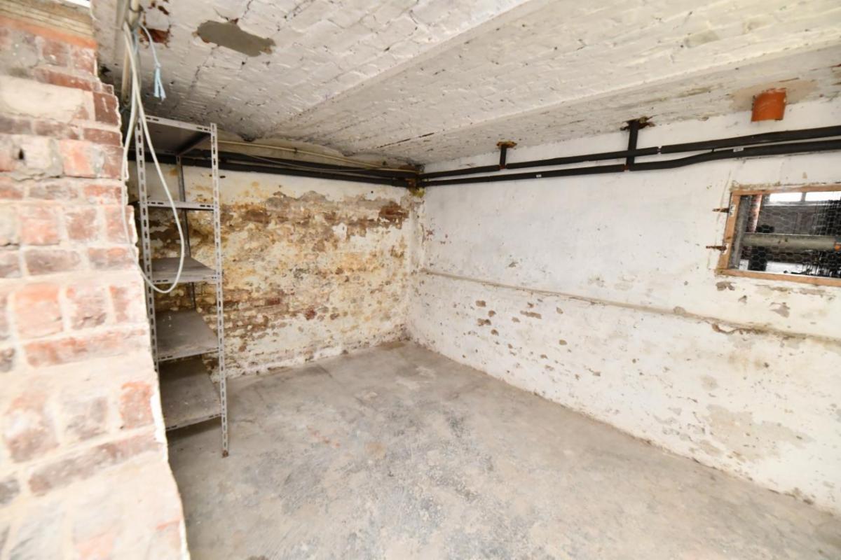 Au rez-de-chaussée : un séjour avec carrelage, une cuisine (évier double, une cuisinière, une hotte), un hall avec cage d’escalier, un wc, une grande pièce de rangement,
