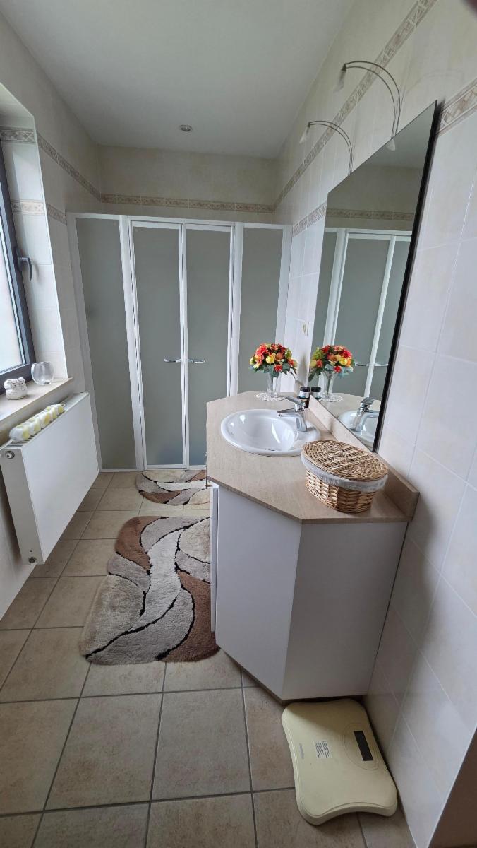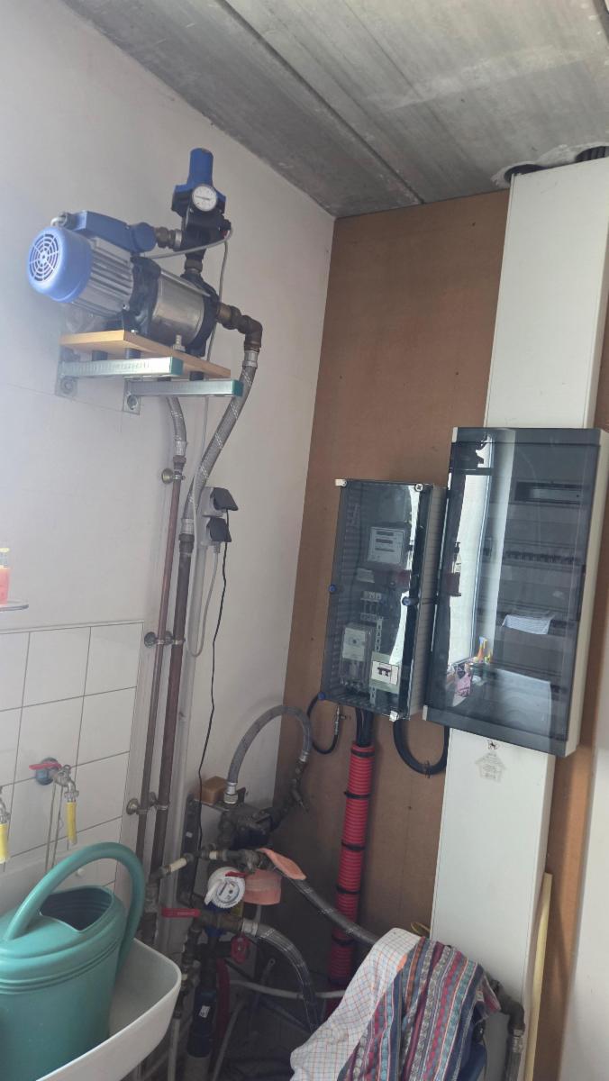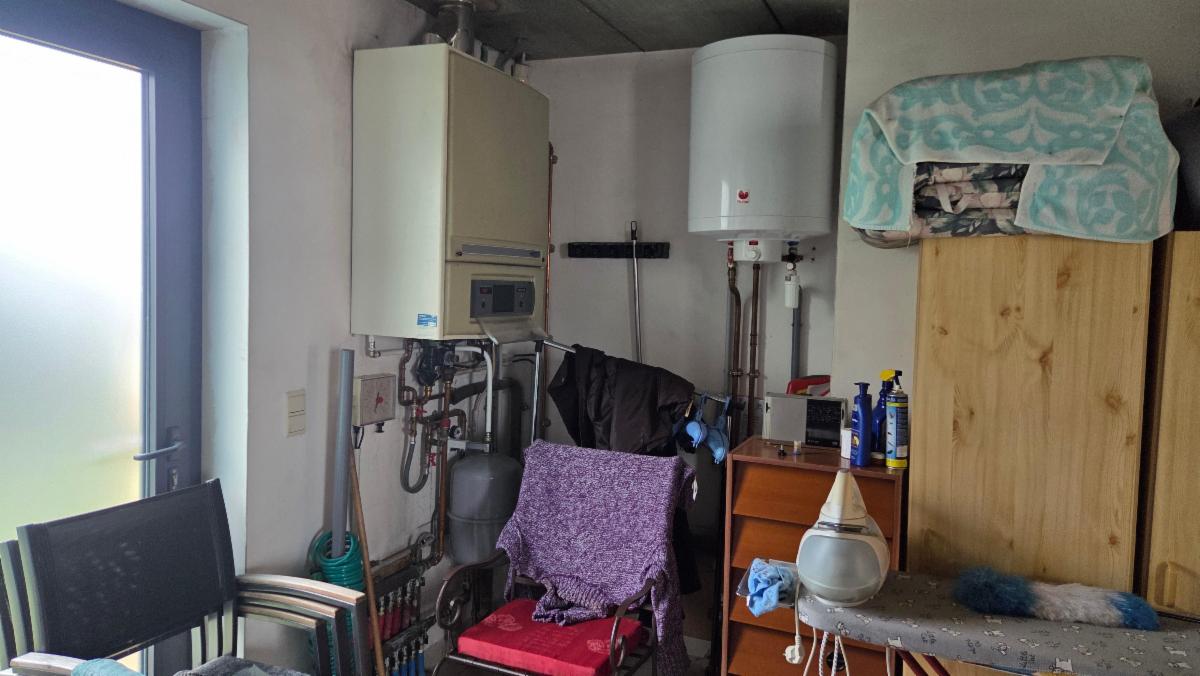 Chauffage central Mazout, cuve +/- 2900 litres enterrée, Châssis alu laqué, départs circuits électriques au départ du coffret divisionnaire vers l'étage aménageable, alarme, adoucisseur d'eau (sous contrat), groupe hydrophore et filtration charbon vers 2 wc et machine à laver.