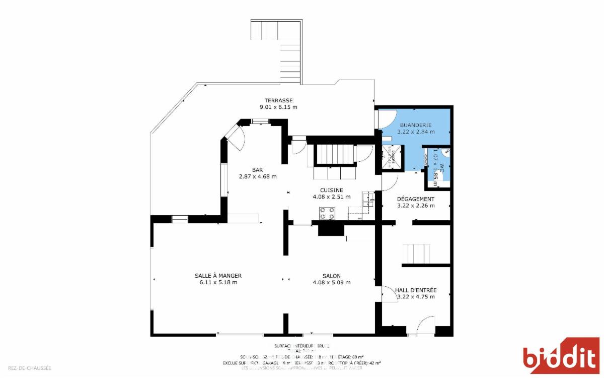 Au Rez-de-chaussée : Hall d’entrée avec dégagement, un wc, une buanderie, un salon, une salle à manger, une cuisine avec une pièce « bar » avec accès à une terrasse