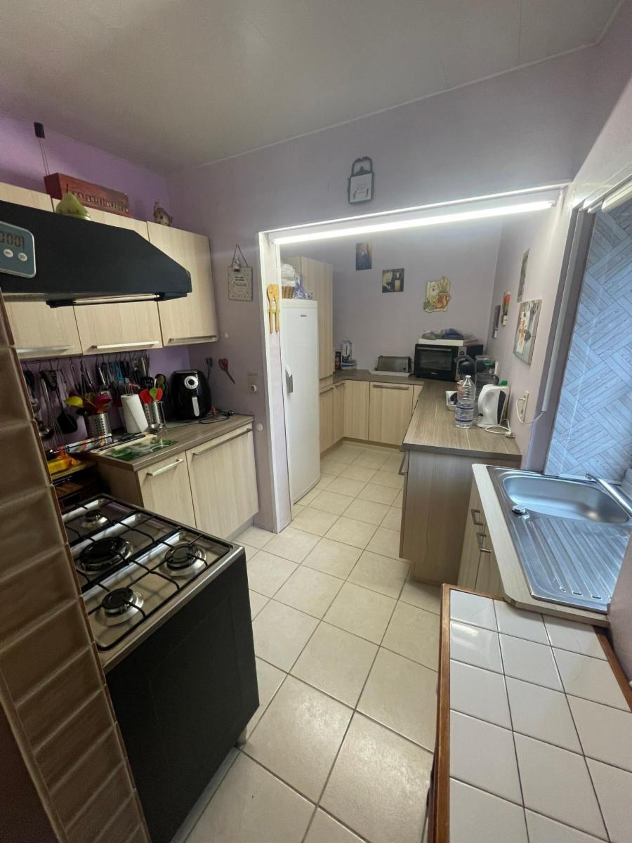 - rez-de-chaussée : un garage une voiture, un hall d’entrée, un sas d’entrée carrelé, une salle-à-manger et salon, une cuisine non équipée (sauf les meubles) et une chambre spacieuse ;