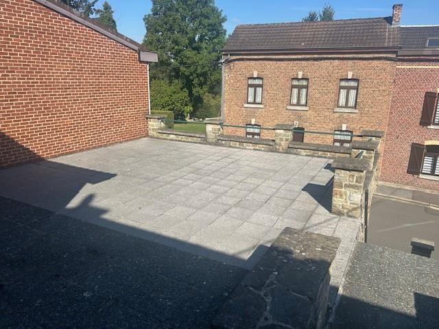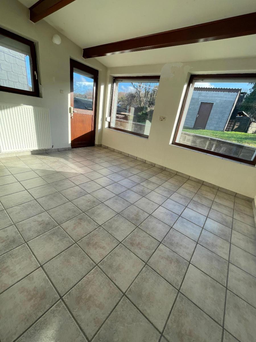 • Bel étage : hall d’entrée carrelé, cuisine équipée à remettre au goût du jour, salle de bains avec wc, douche, lavabo et coin buanderie donnant accès au jardin, salle à manger, vaste living de +-40 m², véranda carrelée avec accès indépendant, salle de repassage carrelée avec accès indépendant vers le jardin arrière et 1ère chambre.