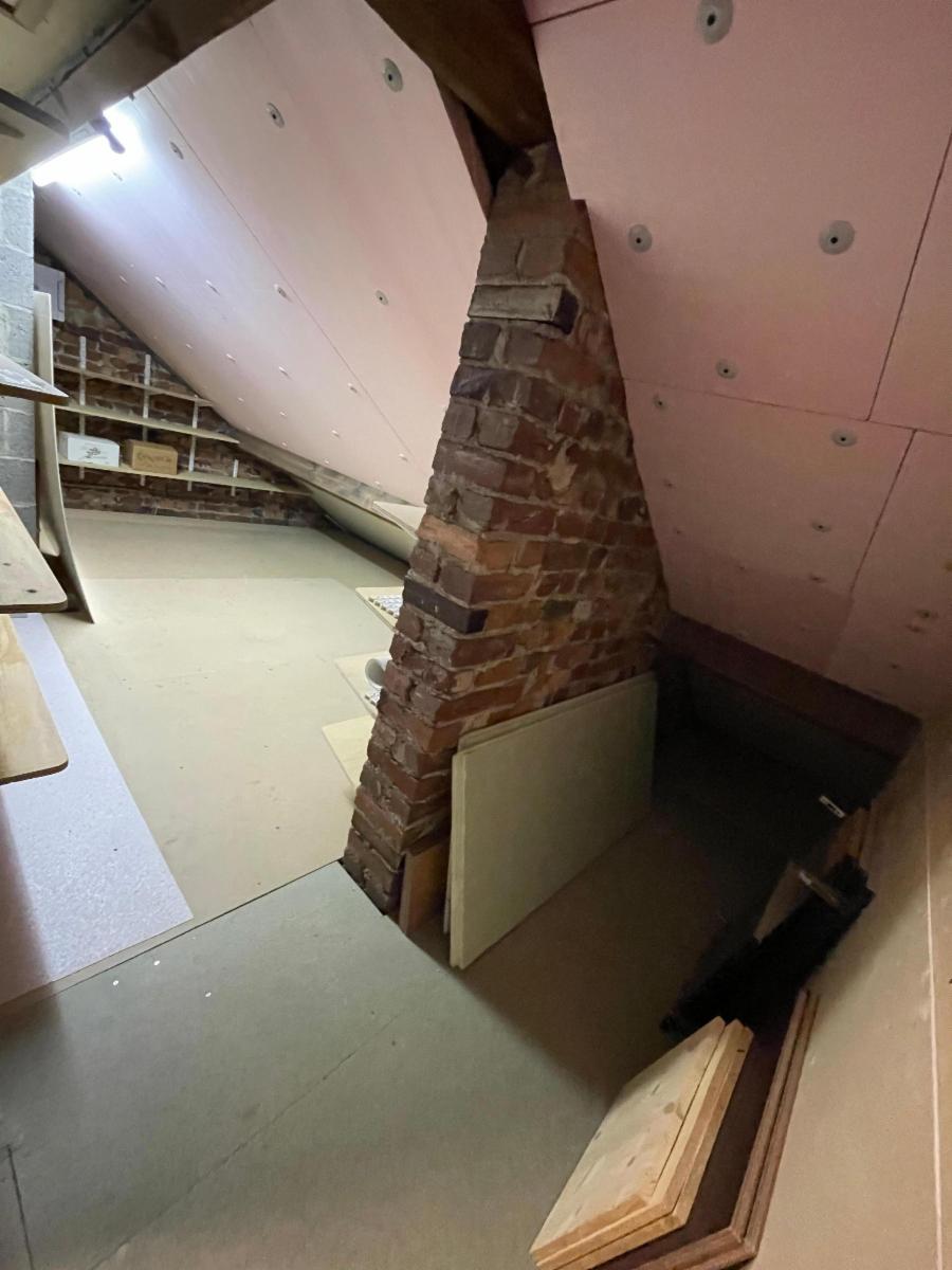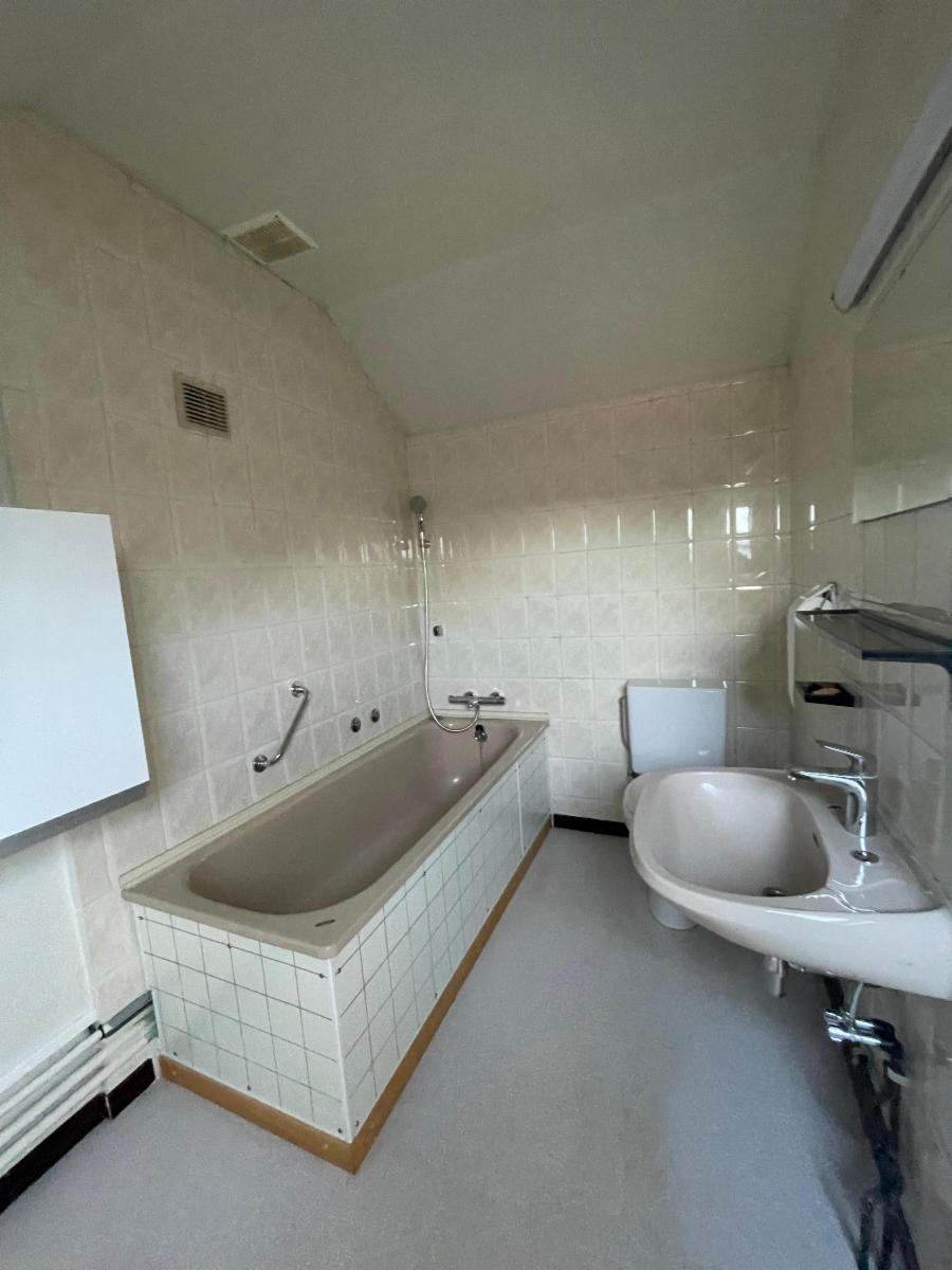 • Etage mansardé sur plancher: salle de bains avec baignoire, douche et wc, 2e chambre mansarde pour du rangement.