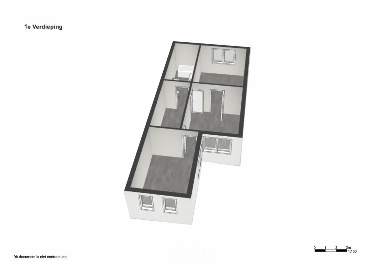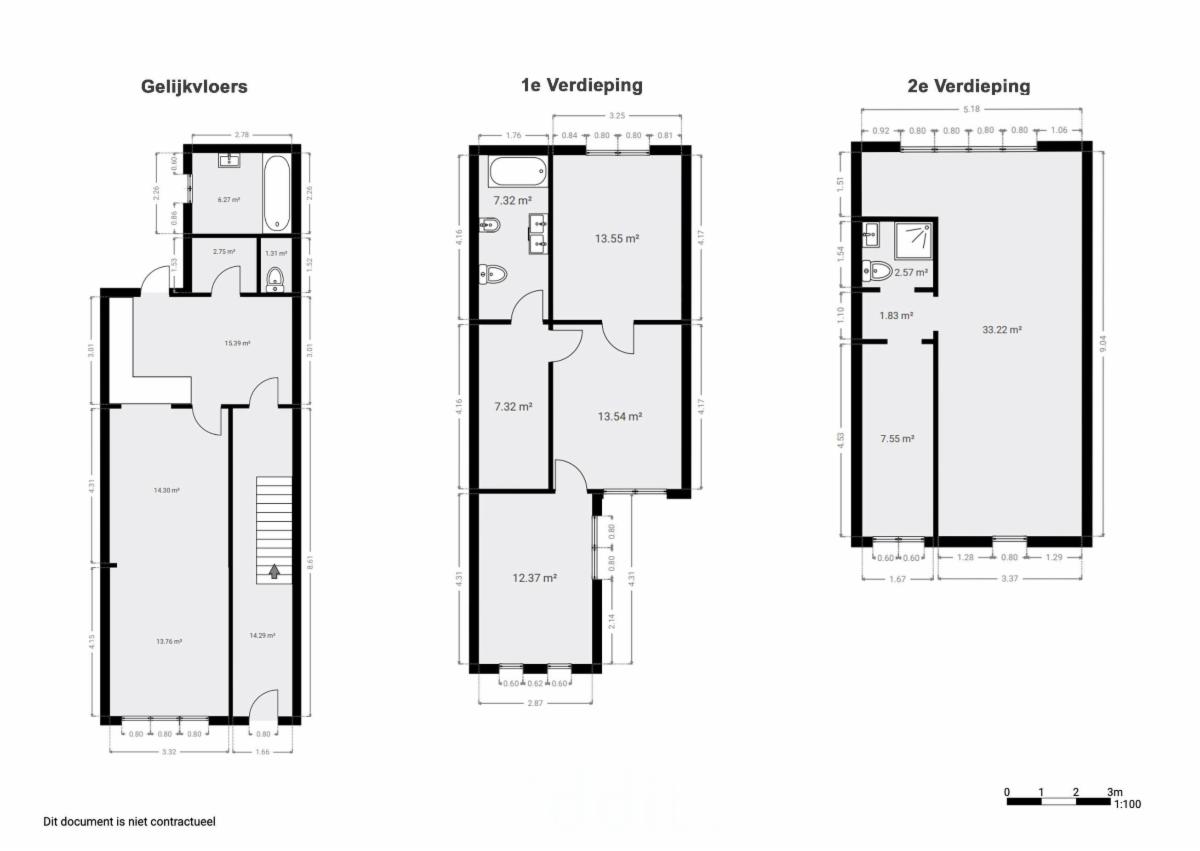 1er étage : 3 chambres, 1 salle de bain et toilette.