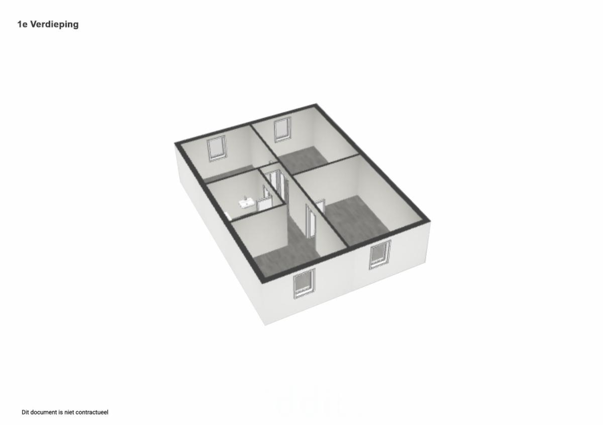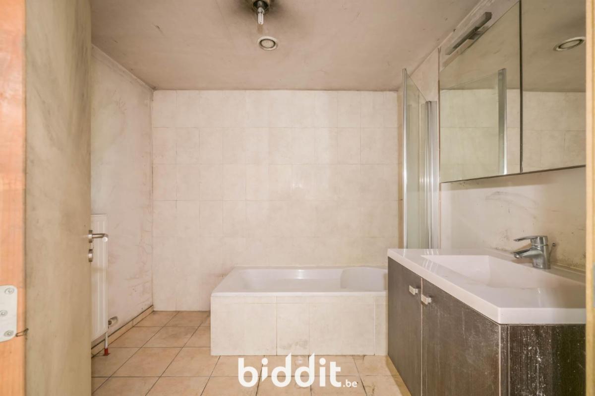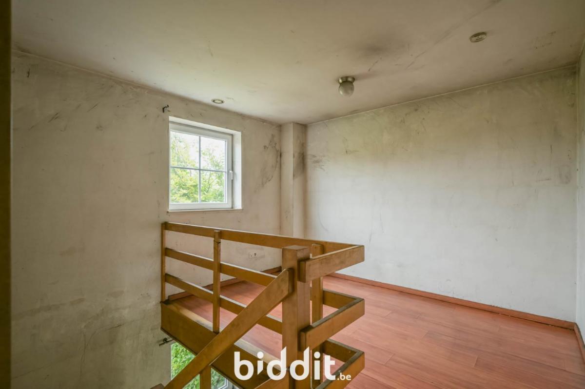 Au premier étage, nous avons un hall de nuit très spacieux avec du parquet stratifié qui donne accès à 3 chambres et à la salle de bains. Les chambres sont toutes équipées de parquet stratifié. 2 grandes chambres donnent sur le jardin. La 3ème grande chambre est située à l'avant de la maison. La salle de bains est équipée d'une baignoire (avec douche), d'un lavabo simple et de toilettes. Une trappe avec un escalier coulissant permet d'accéder au grenier qui s'étend sur toute la longueur de la maison.