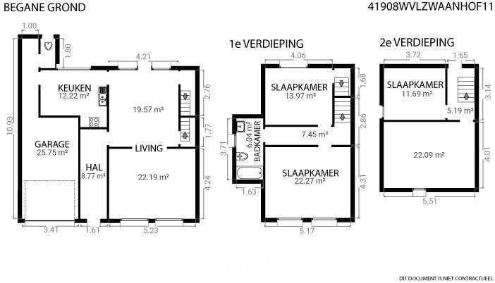 - Rez-de-chaussée avec hall d'entrée, garage, wc, cuisine, salon, terrasse et jardin ;