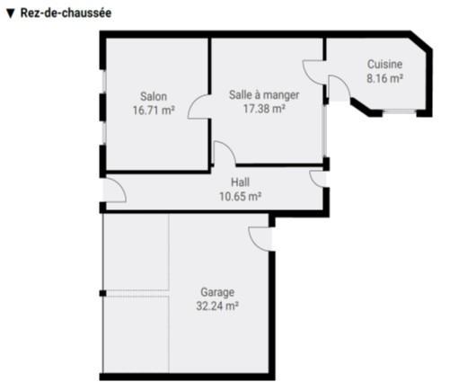 • Rez-de-chaussée : hall d’entrée, salon, salle à manger et cuisine