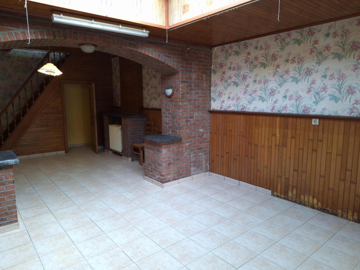 Située à Naast, à +/- 5 min en voiture de Soignies et à deux pas des campagnes environnantes, maison à rénover se composant de la manière suivante: