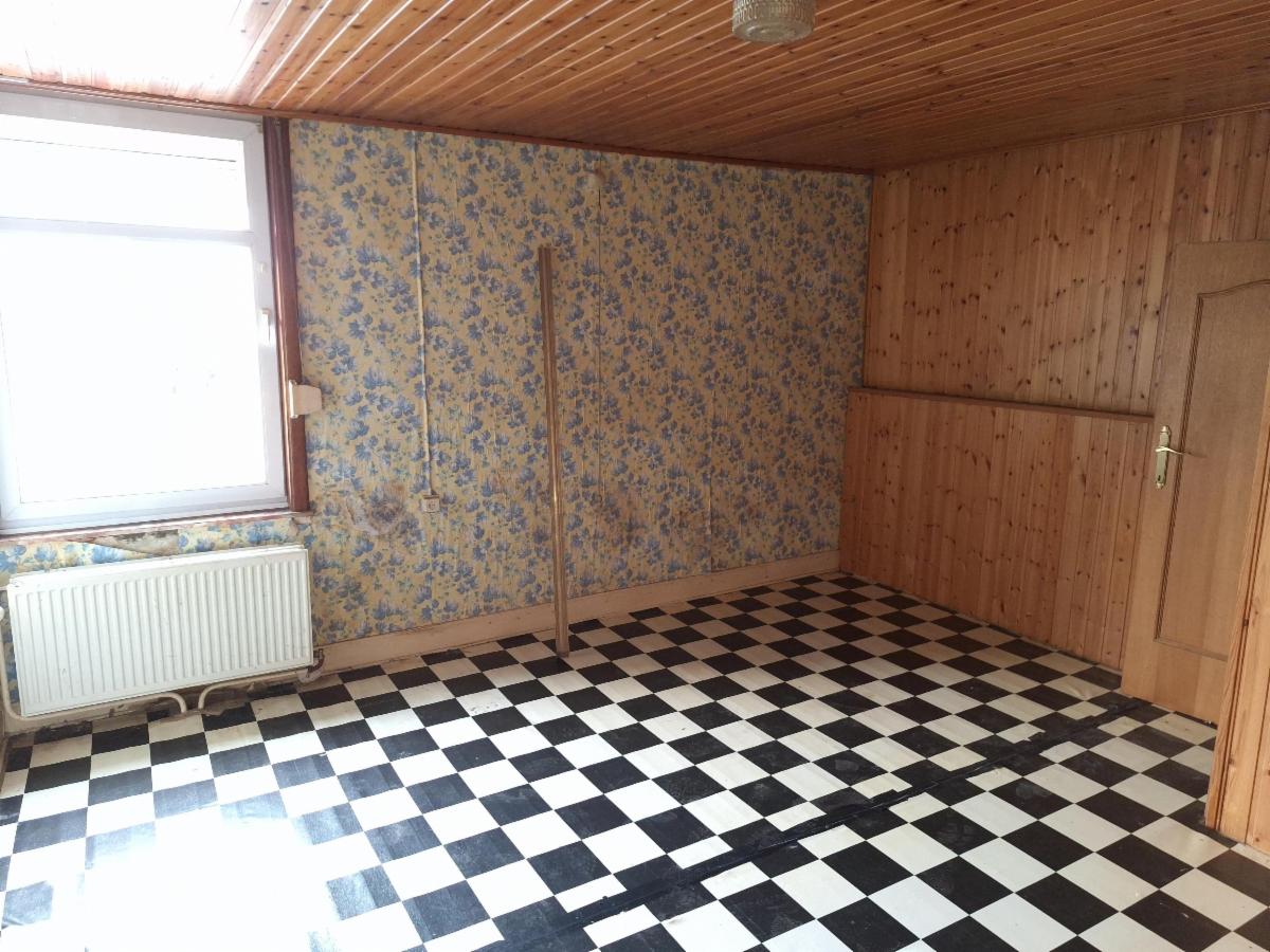 Commodités : Toiture : tuiles – non isolée ; Revêtement de sol : carrelage au rez-de chaussée, plancher à l’étage (recouvert d’un vinyle dans les pièces du premier étage) ; Chauffage central au mazout (deux cuves aériennes) ; Compteur électrique mono-horaire avec compteur à budget ; Châssis en PVC (sauf porte et châssis de la cuisine qui sont en bois) avec double vitrage. Vente soumise à l'autorisation du Juge de Paix.