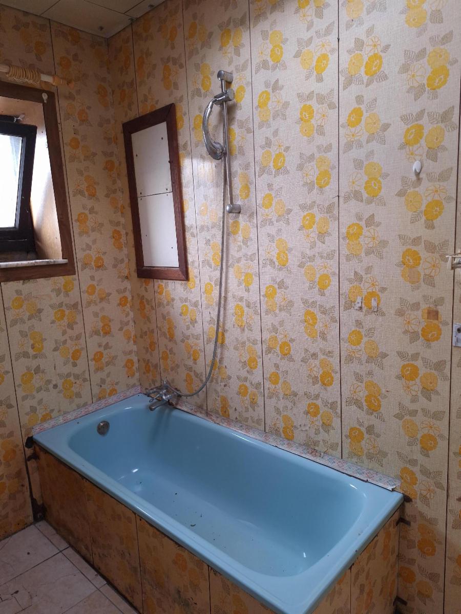 Au rez-de-chaussée: entrée directe dans le salon à rue (18m²), un grand séjour de 40m² avec un débarras sous l’escalier ; cuisine non équipée avec porte donnant accès à l’extérieur ; une salle de bain avec une baignoire et un évier. A l’étage : une chambre à rue de 20m² et une pièce à l’arrière de 12,5m² pouvant servir de chambre avec escalier menant au grenier. Grenier aménageable de 30m²