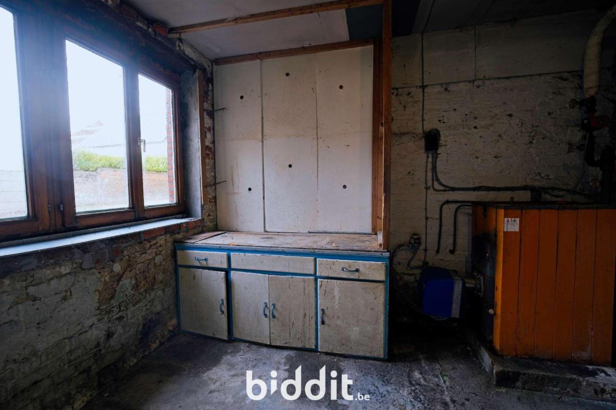 Rez-de-chaussée : hall d'entrée avec escalier, cuisine, 2 buanderies, 2 pièces à vivre, débarras, WC.