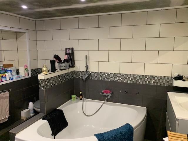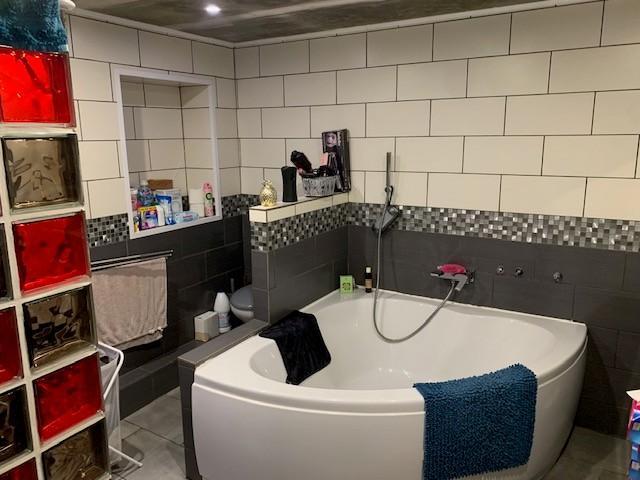 Une salle de bain complète avec baignoire, douche et WC