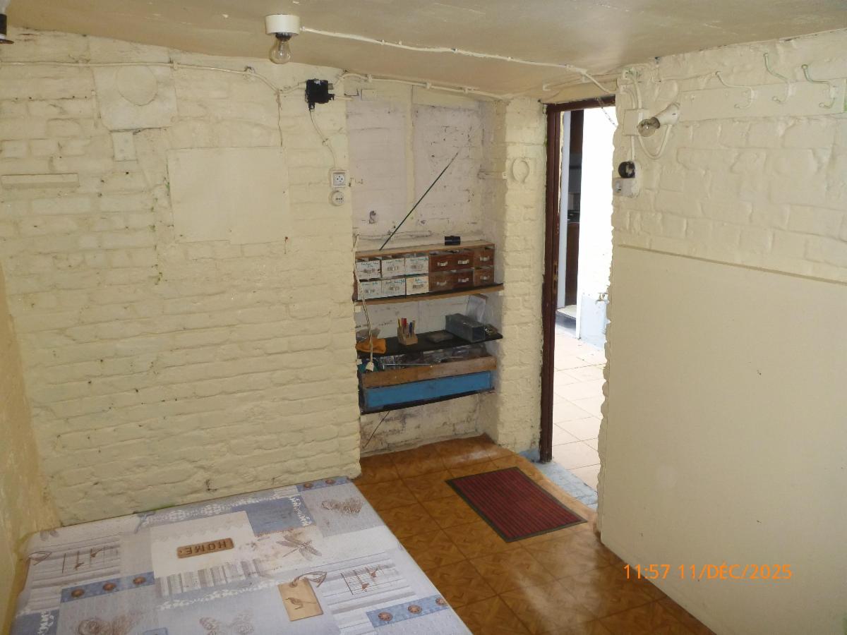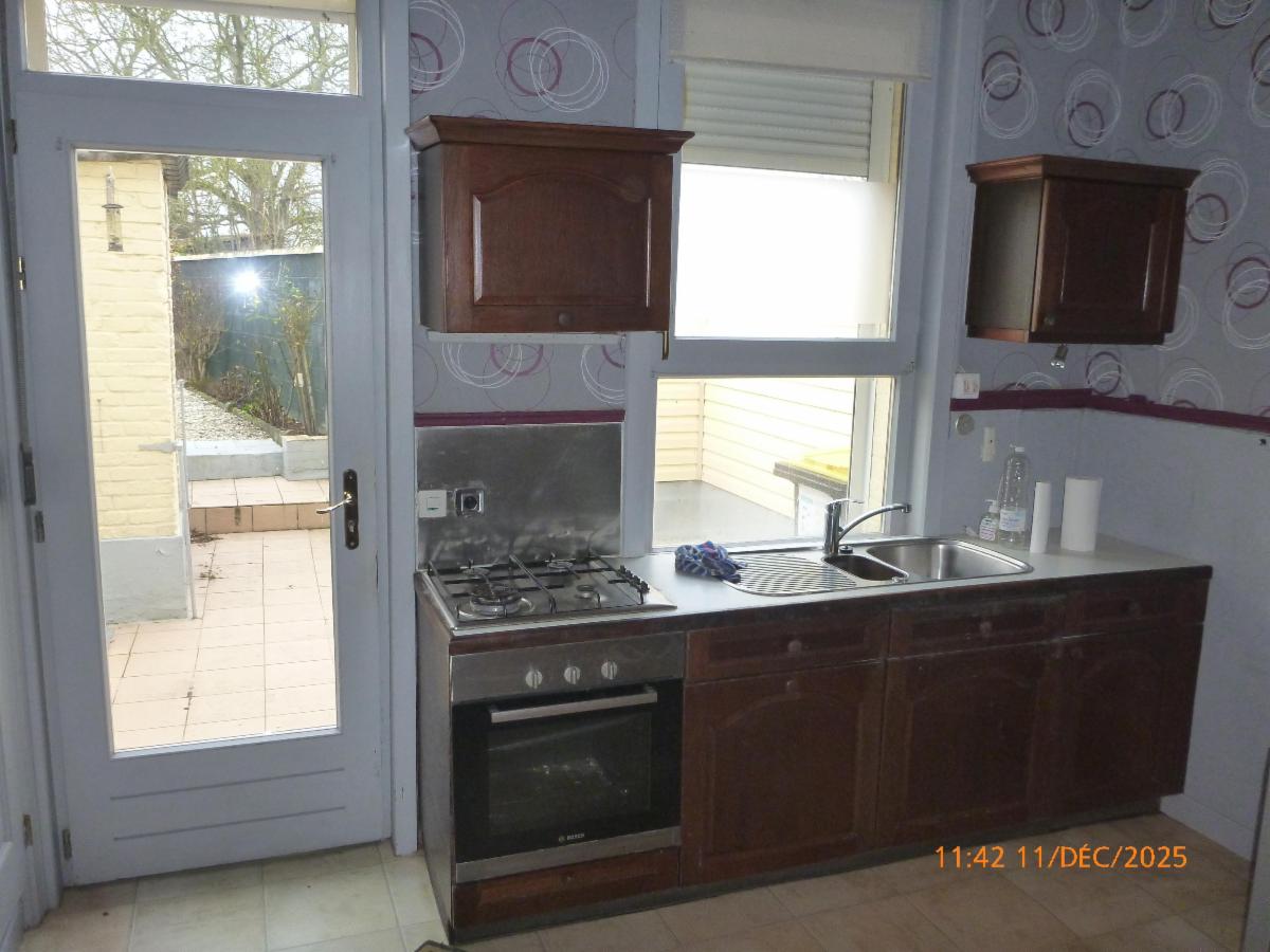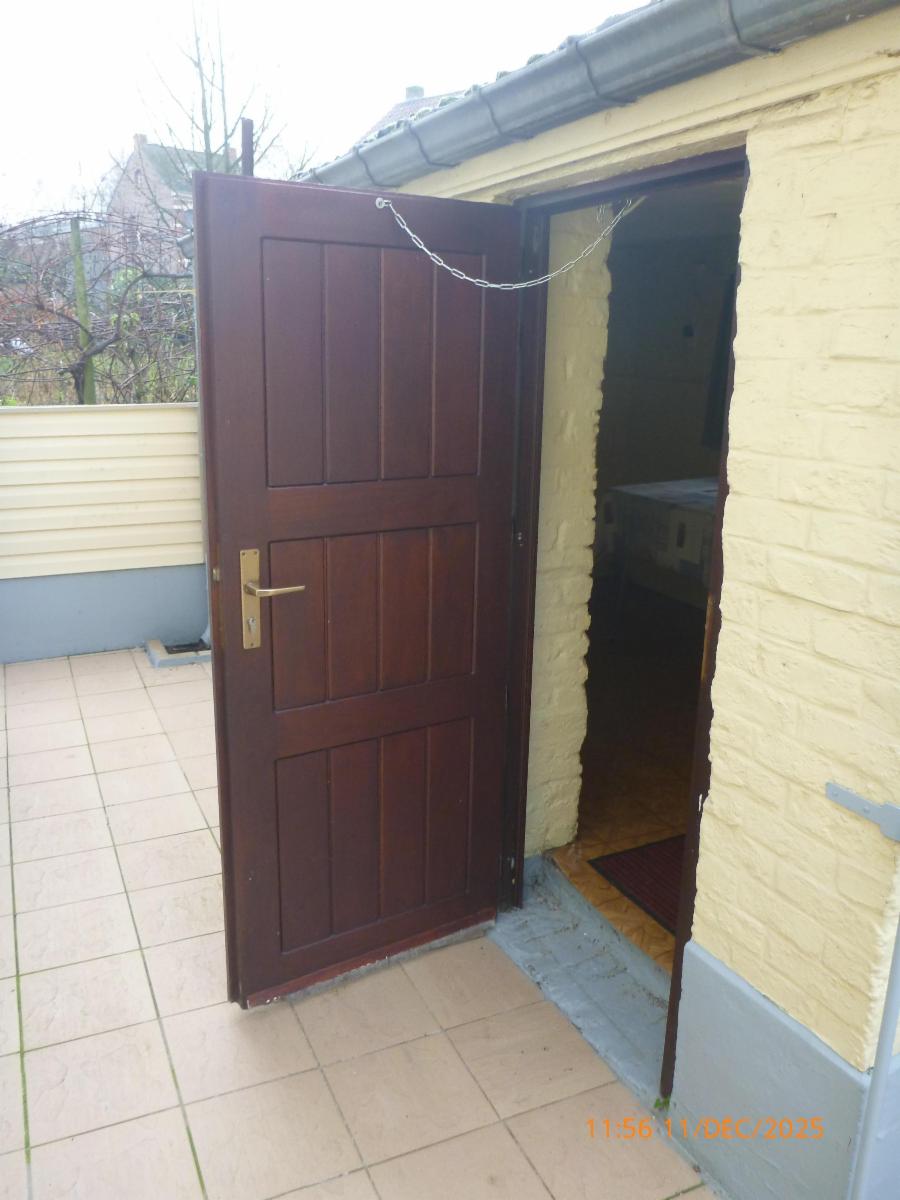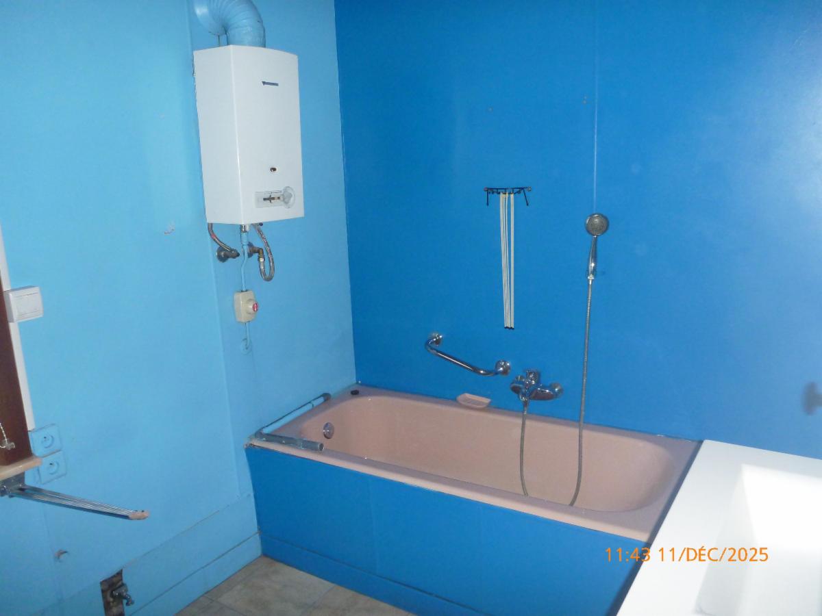 - Rez : une salle à manger, 1 chambre, une salle de bain (WC, baignoire, évier), une cuisine (évier, four, taque au gaz, frigo et congélateur).