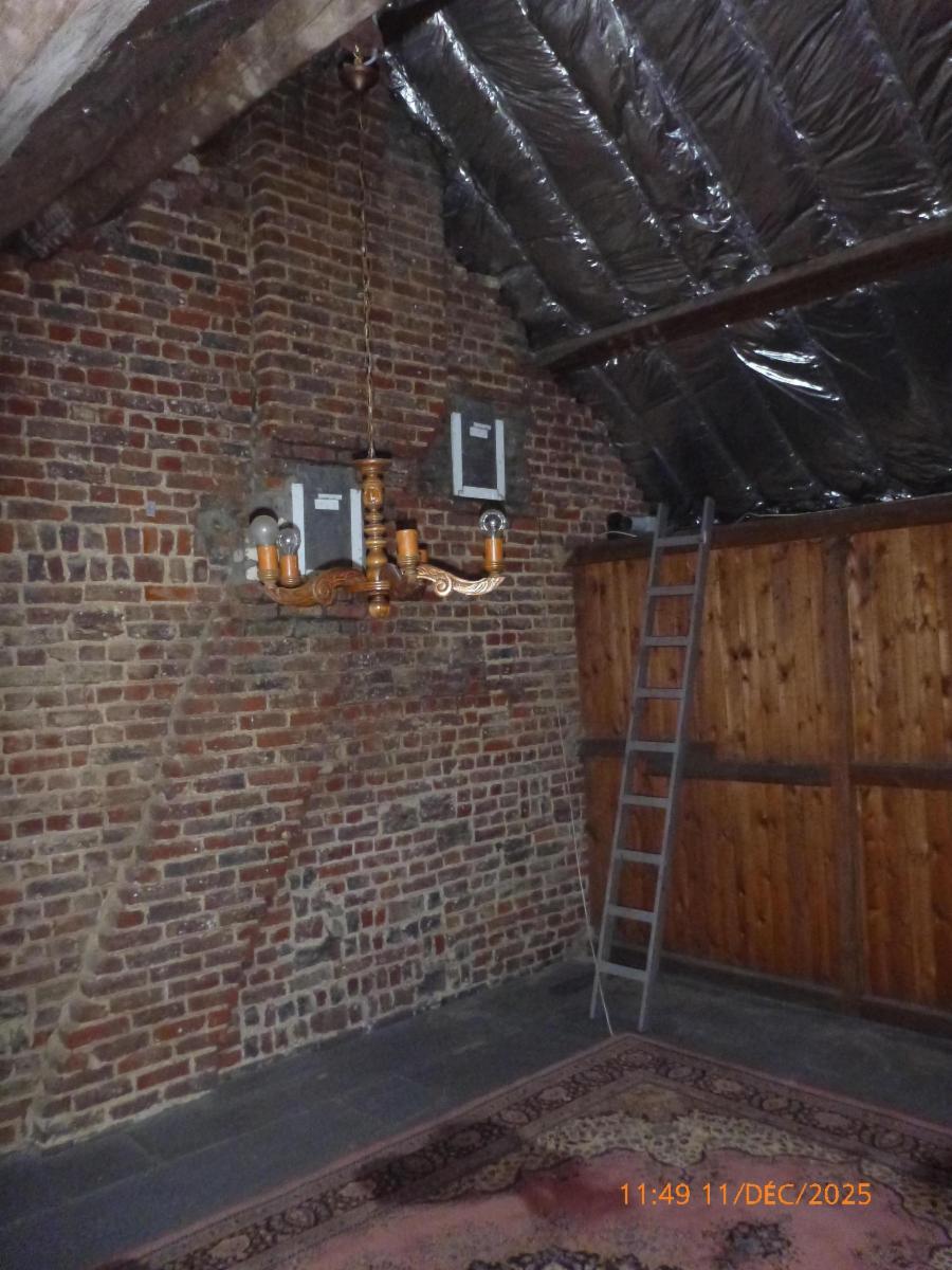 Grenier aménageable ( +- 3 chambres possible), châssis double vitrage en bois, une grande cave, un foyer au gaz et une citerne au gaz.