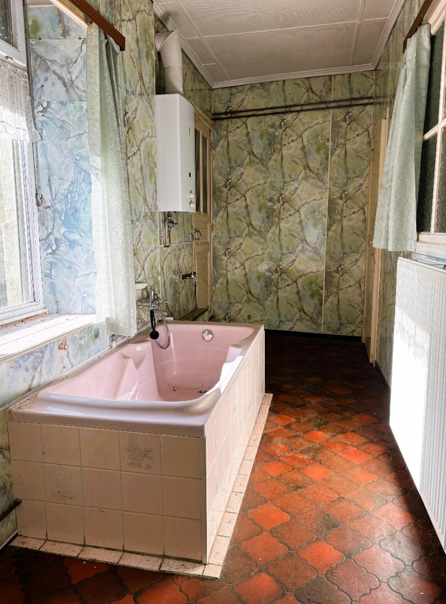 Située en plein coeur du village de HABAY-LA-NEUVE, cette maison deux façades à rénover entièrement offre un beau potentiel pour les investisseurs ou les amateurs de travaux. D'une superficie au sol d'environ 125m², elle est composée :