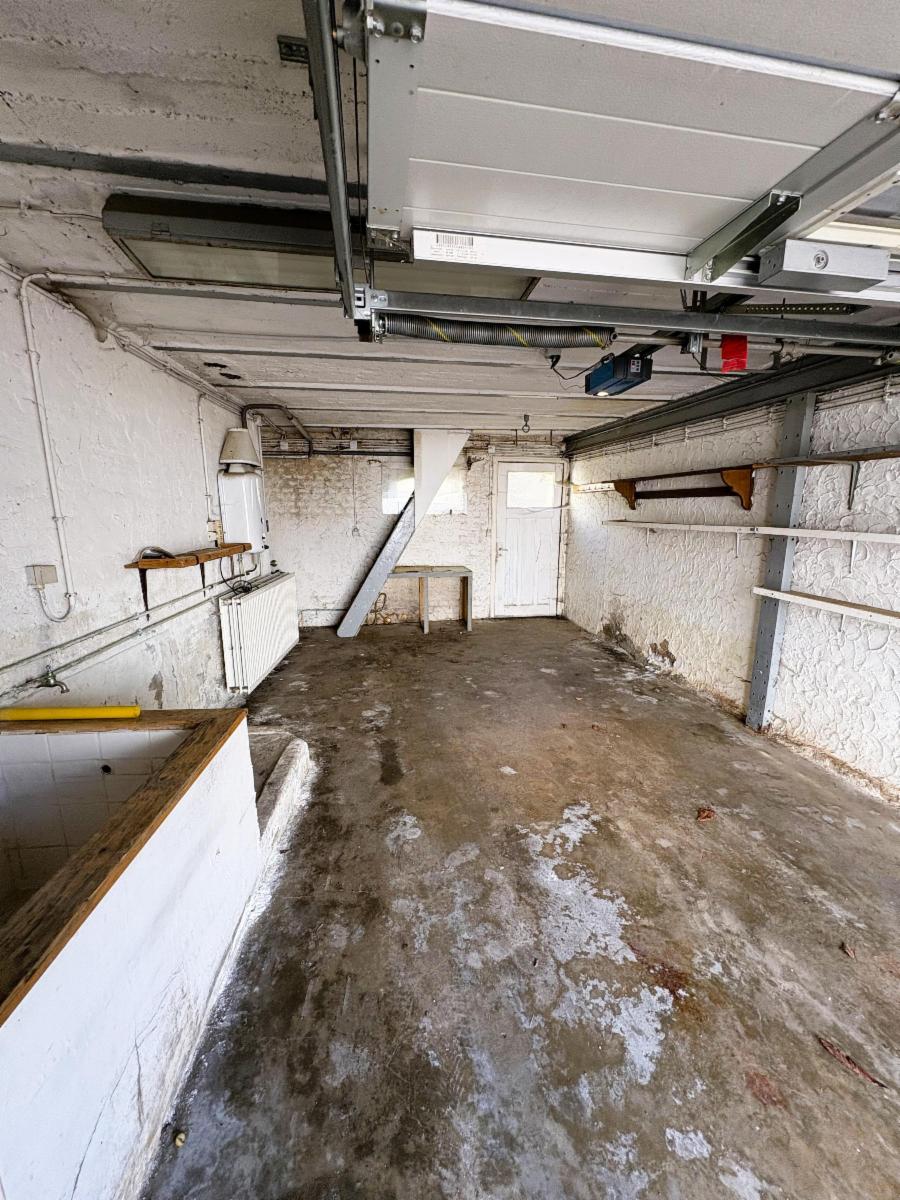 - au RDC : grande pièce (anciennement à usage de commerce), salon (20,6m²), atelier (16m²), cuisine (28m²), salle de bains (8,5m²), véranda. Garage une place (accessible sur Rue Chantraine) avec grenier. Abris. Petit jardin.