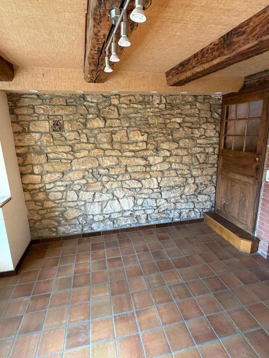• Grand Salon - Salle à manger avec un beau mur en pierre, poutre apparente, porte ancienne