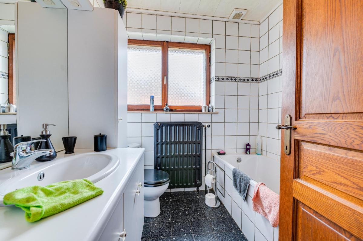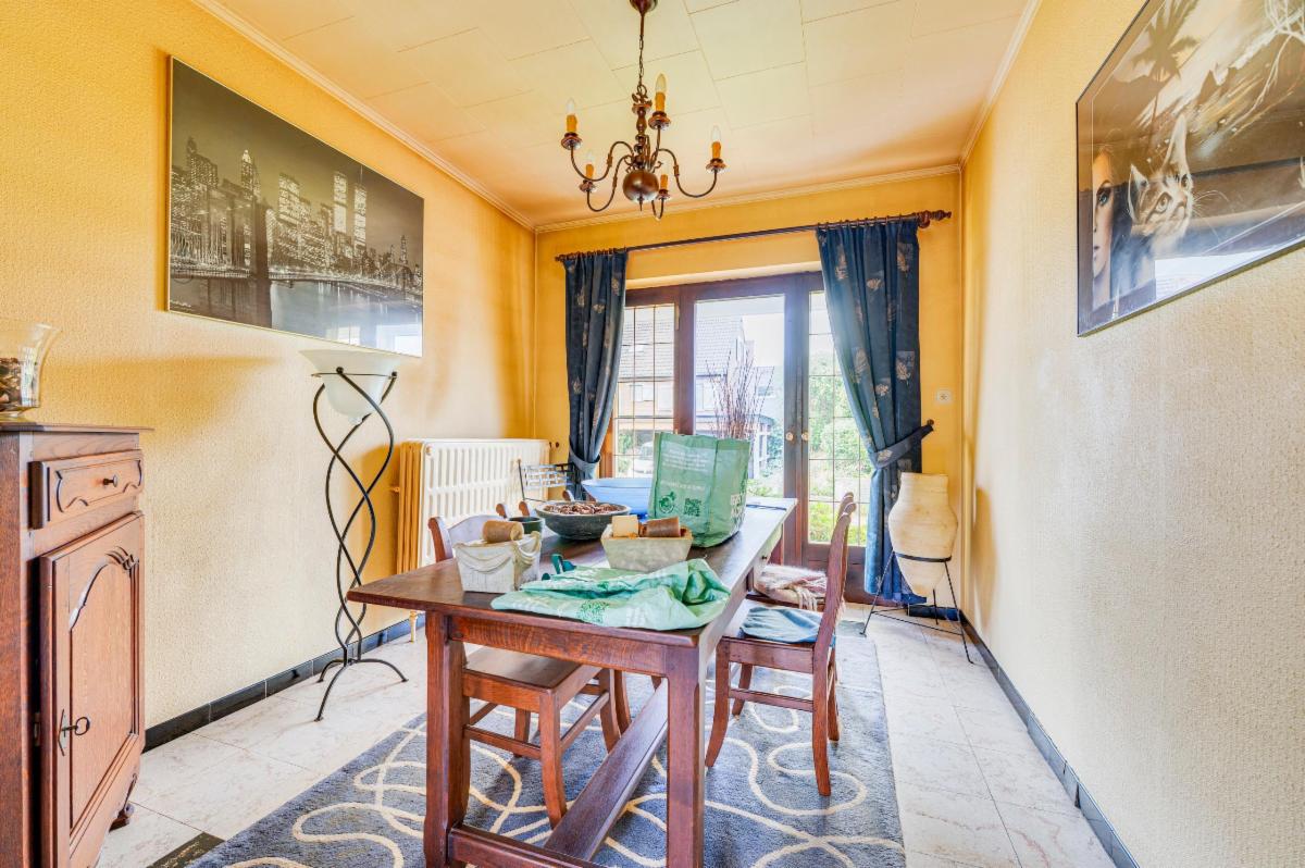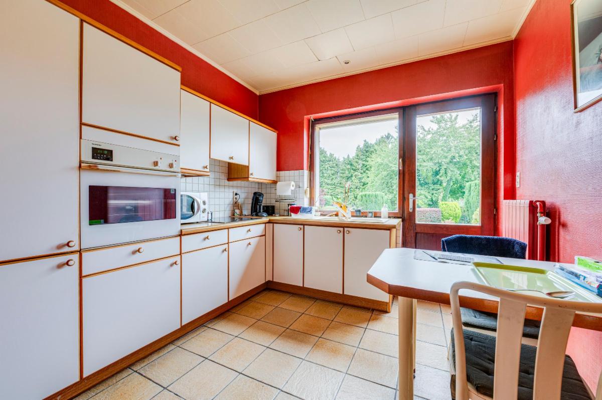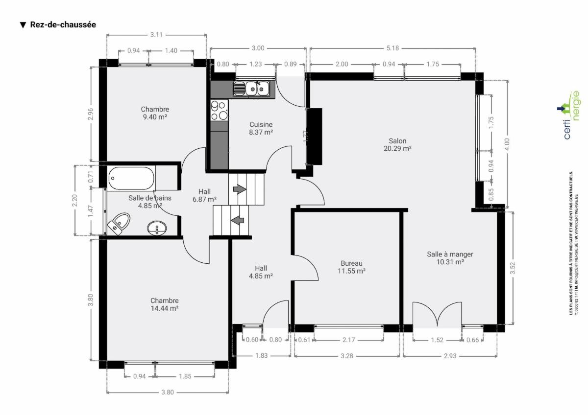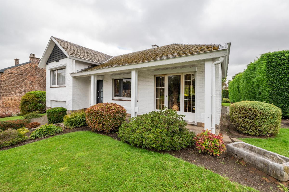 Maison 4 façades avec jardin, comprenant : * Rez-de-chaussée : hall, salon/salle à manger, cuisine, bureau * 1/2 étage : salle de bain, 2 chambres à coucher * Sous-sol : garage, 2 caves