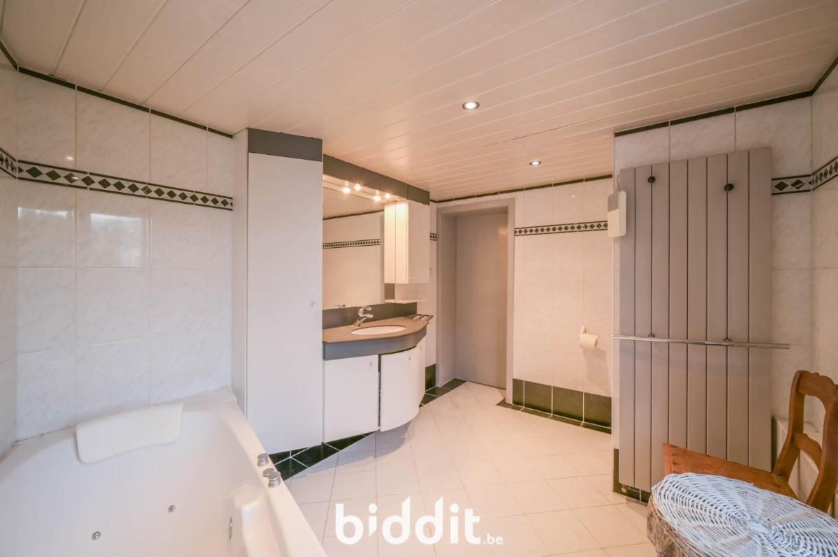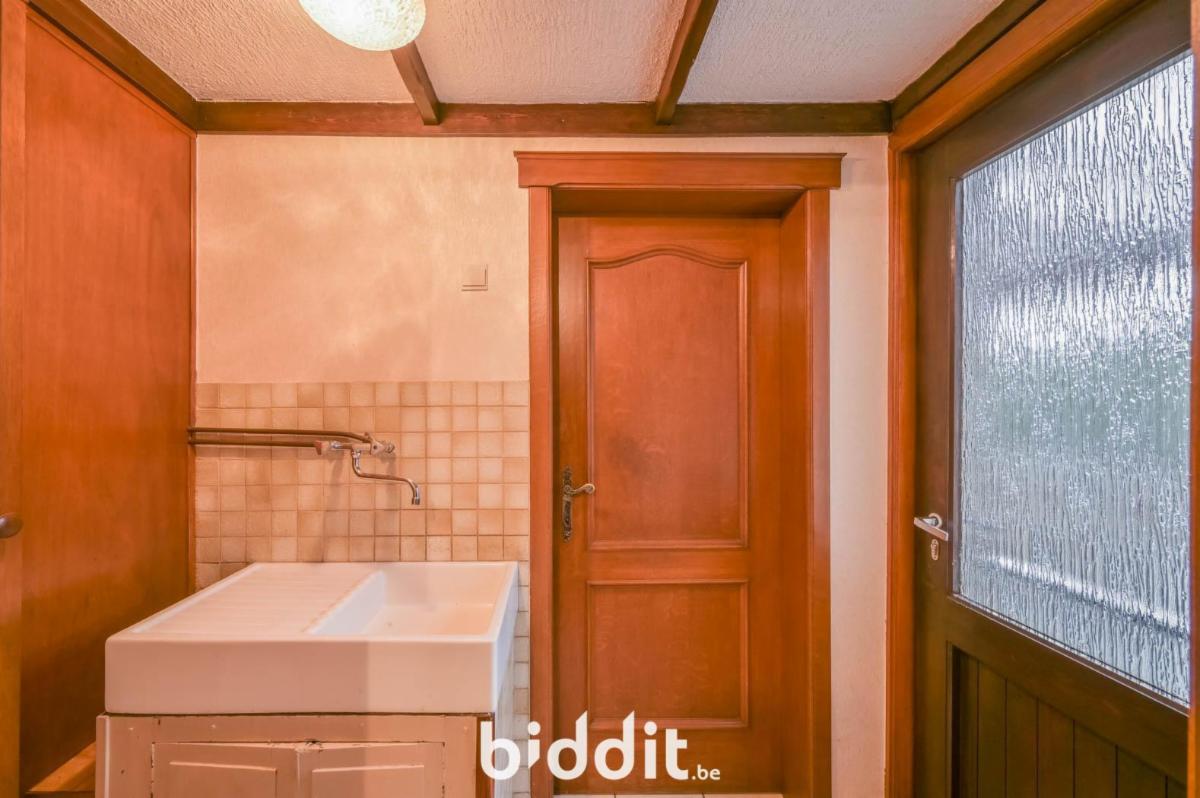 Au rez-de-chaussée, la maison se compose d’un hall d’entrée, d’un agréable espace de vie avec cuisine, buanderie, wc, espace de travail, garage avec salle de douche, ainsi que d’une terrasse couverte et d’un jardin.