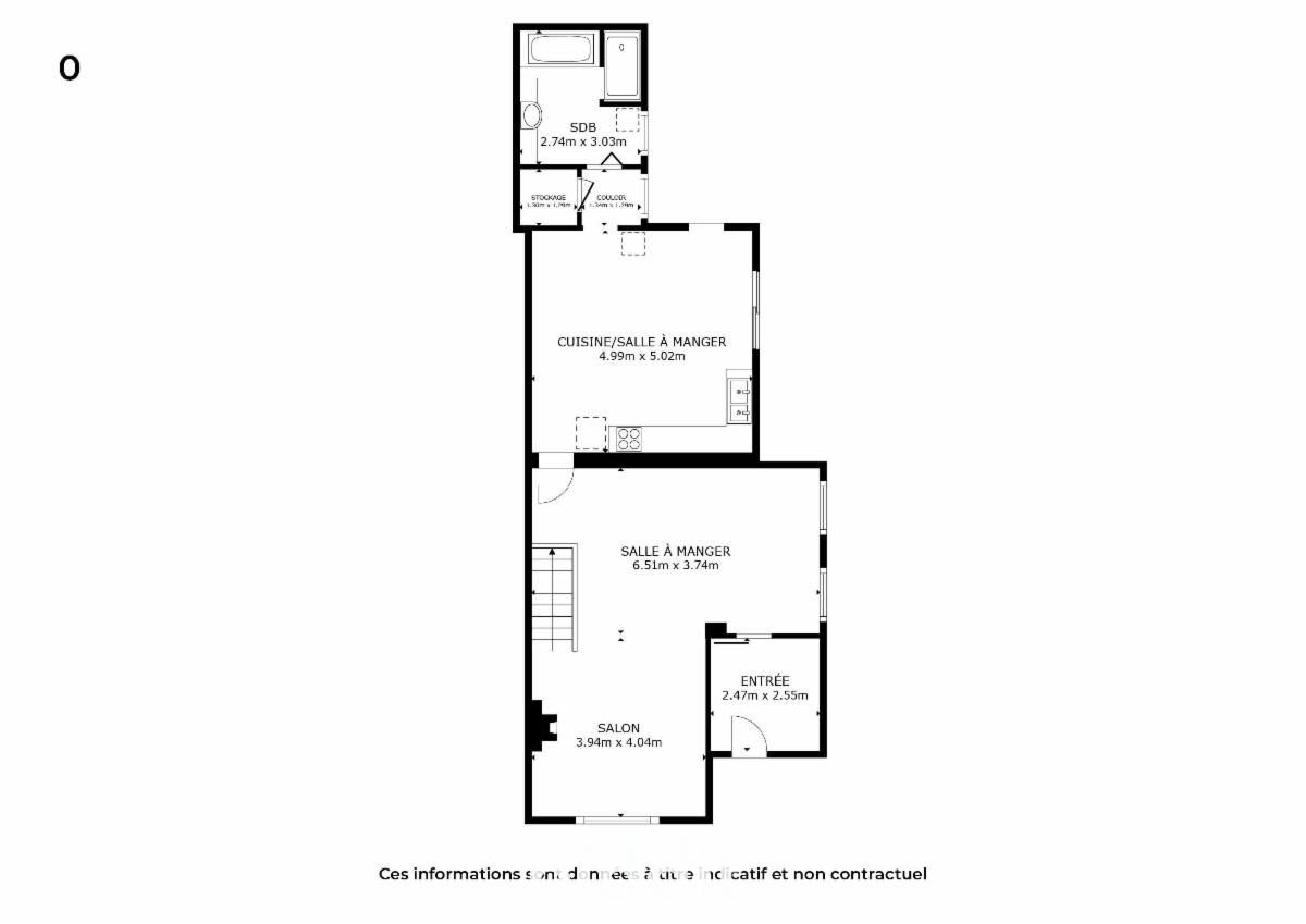 Rez : Séjour (Salon-Salle-à-manger), cuisine, sdb, jardin et garage.