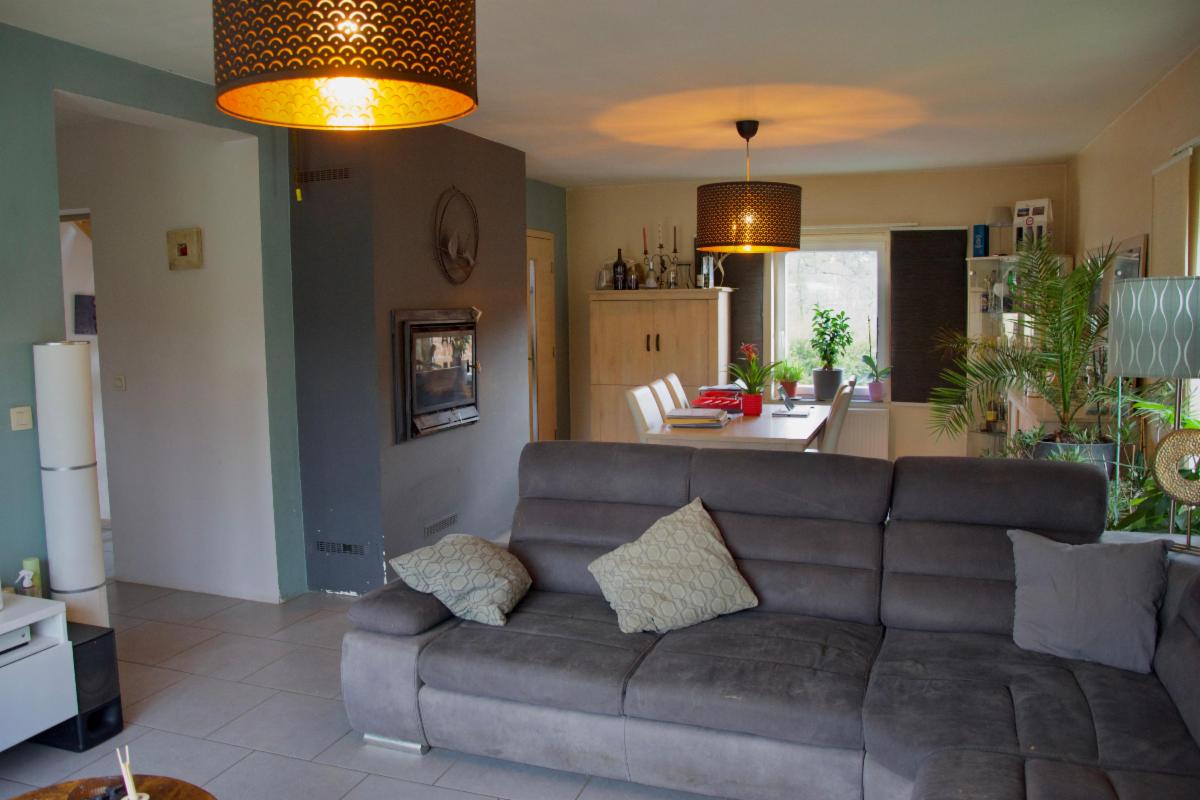 Située à Ohey, rue de Baya,11D, une villa unifamiliale d’environ 220 m² habitable (superficie PEB), se composant comme suit :