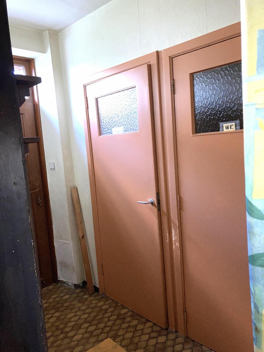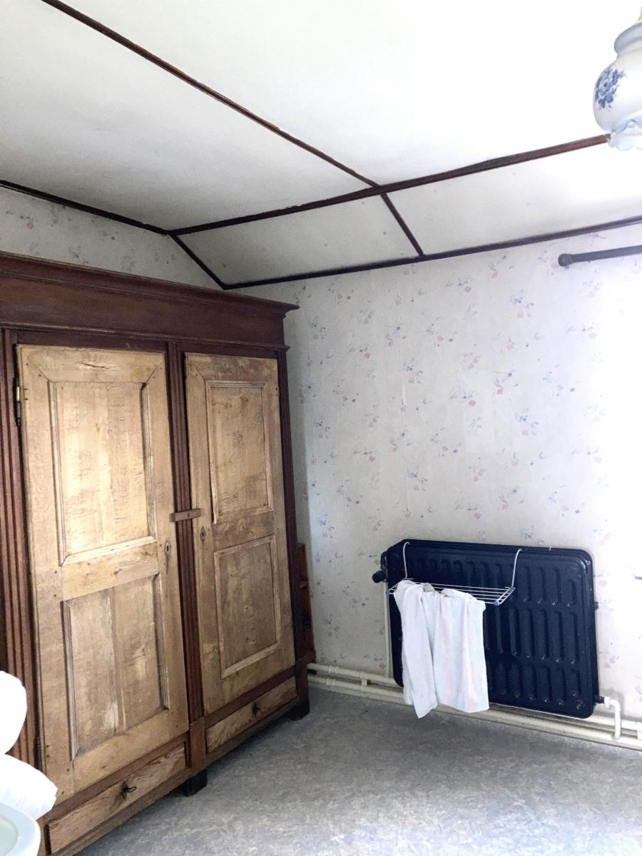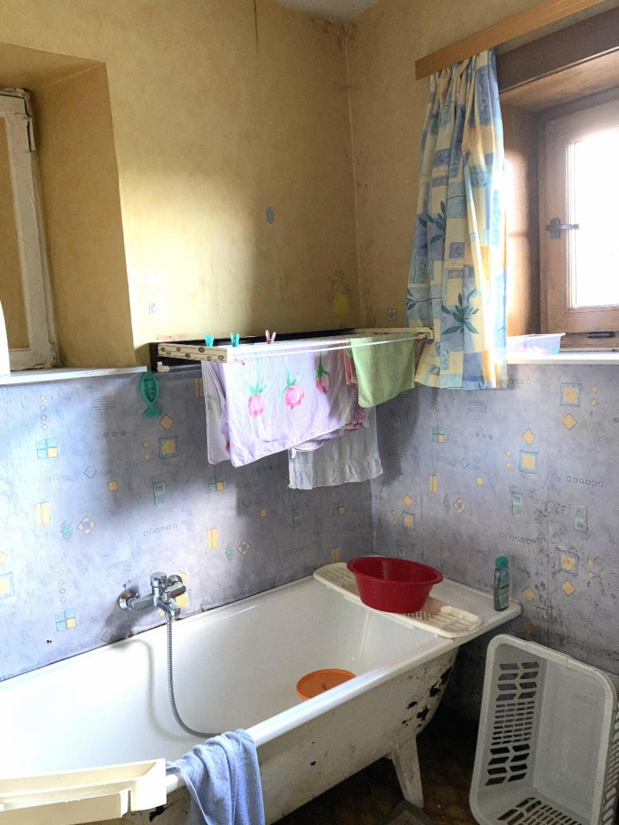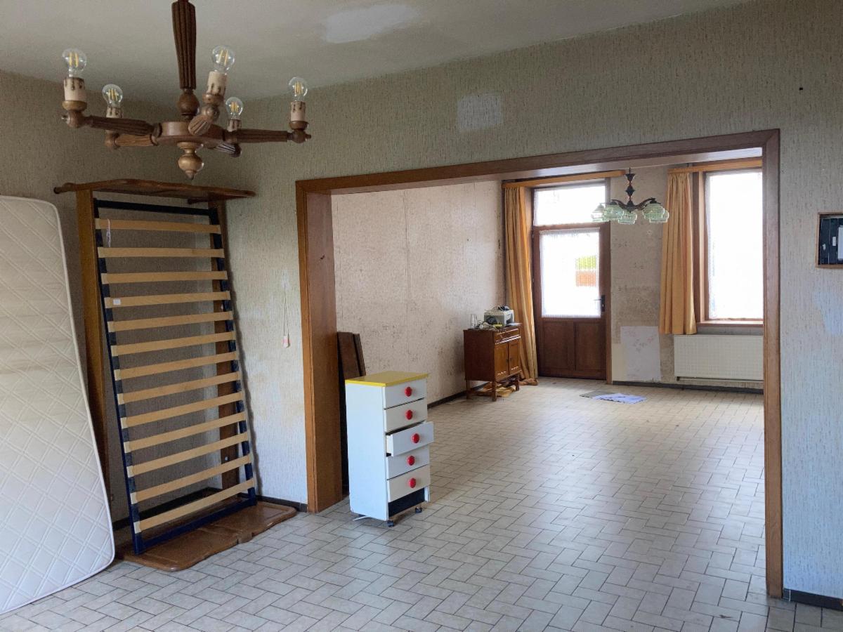 Rez-de-chaussée : grand living, cuisine, salle de bain, WC, débarras.