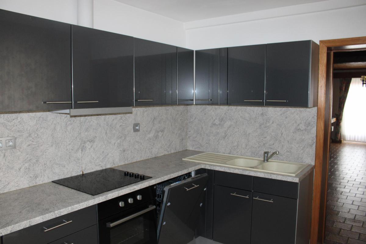 -1er étage : hall avec WC desservant le salon, la salle à manger, la cuisine équipée et la salle de douche avec WC ;